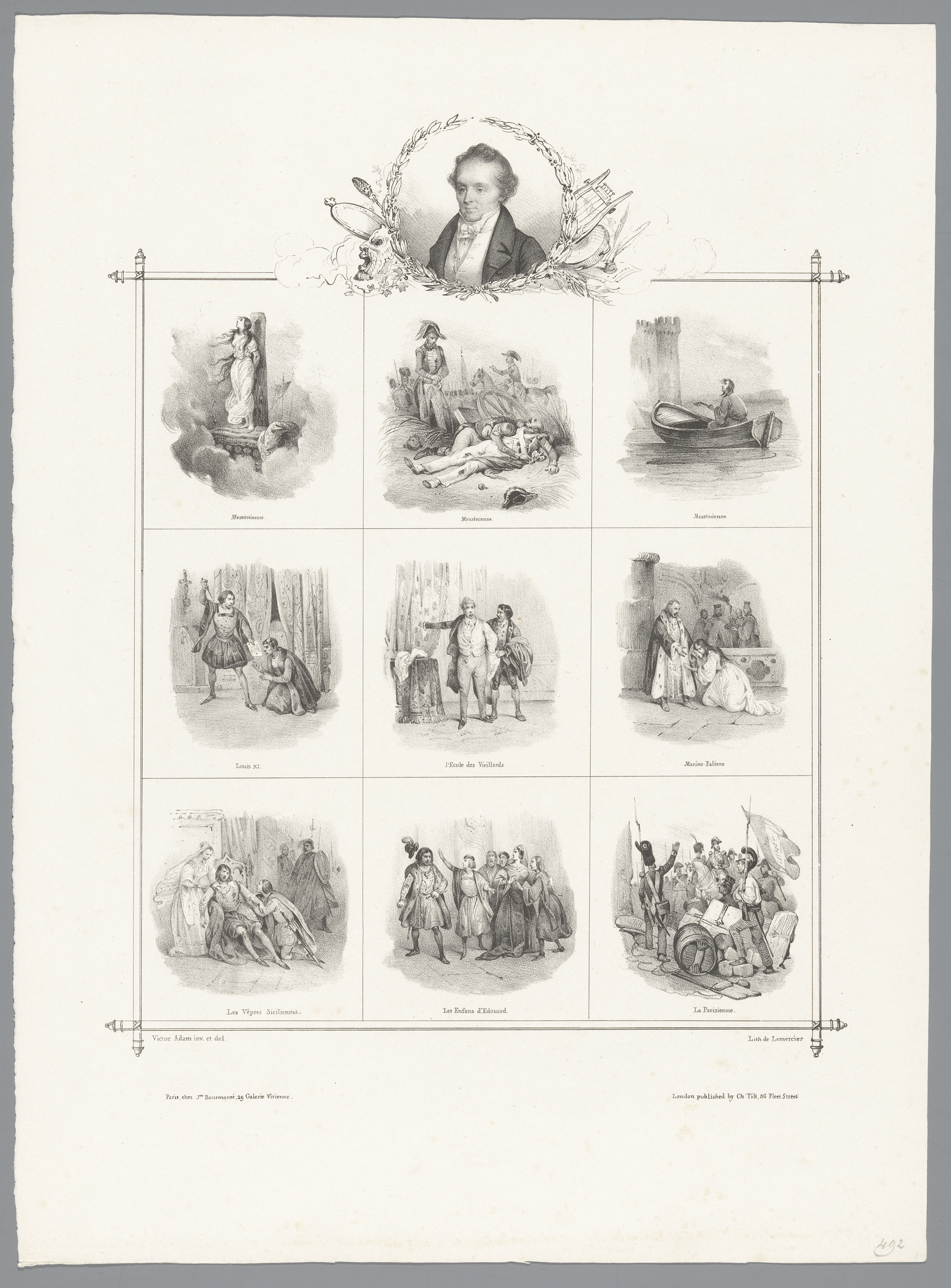 Portret van Casimir Delavigne en negen voorstellinge...
