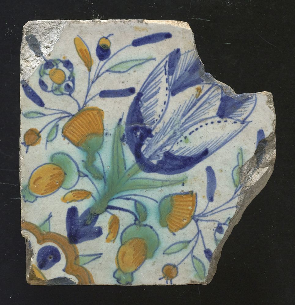 tegel van aardewerk met tinglazuur, voorstellende: o...