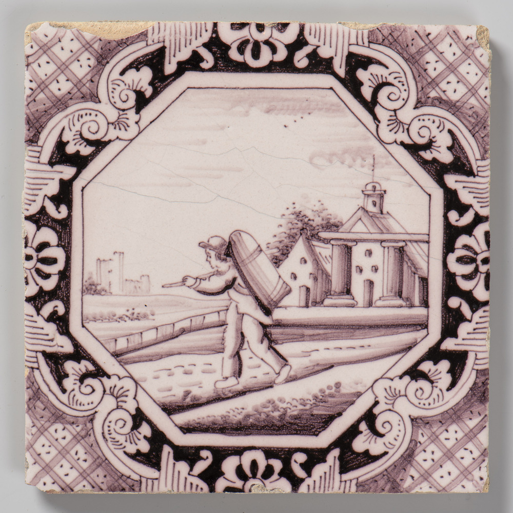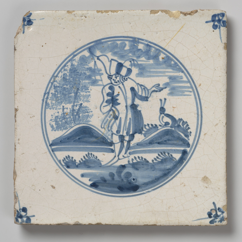 tegel van aardewerk met tinglazuur, voorstellende: m...