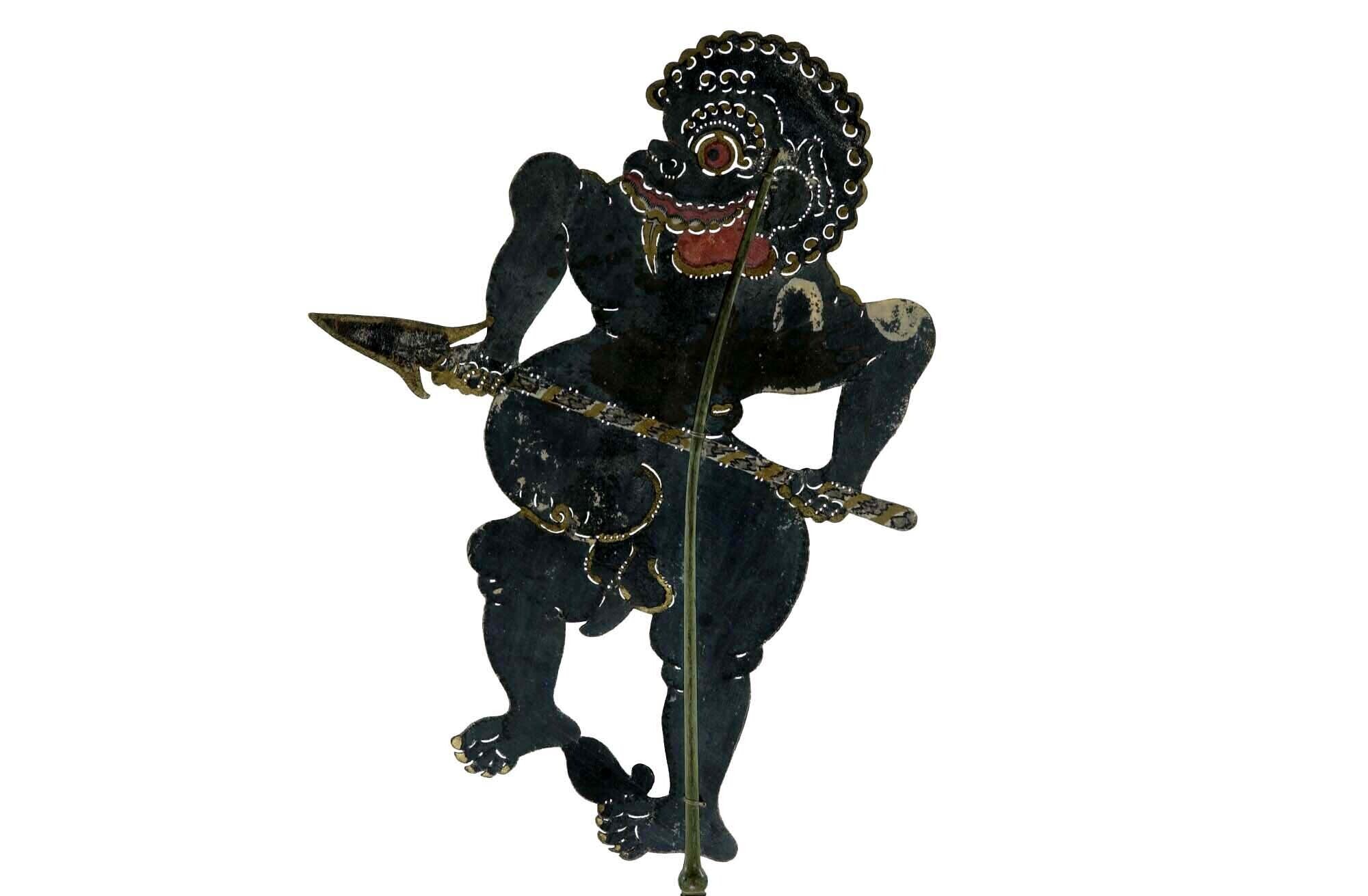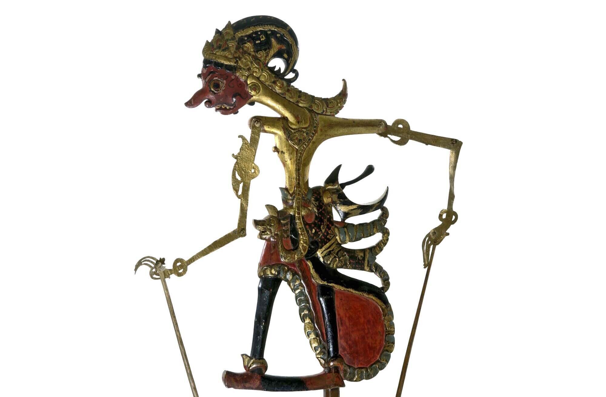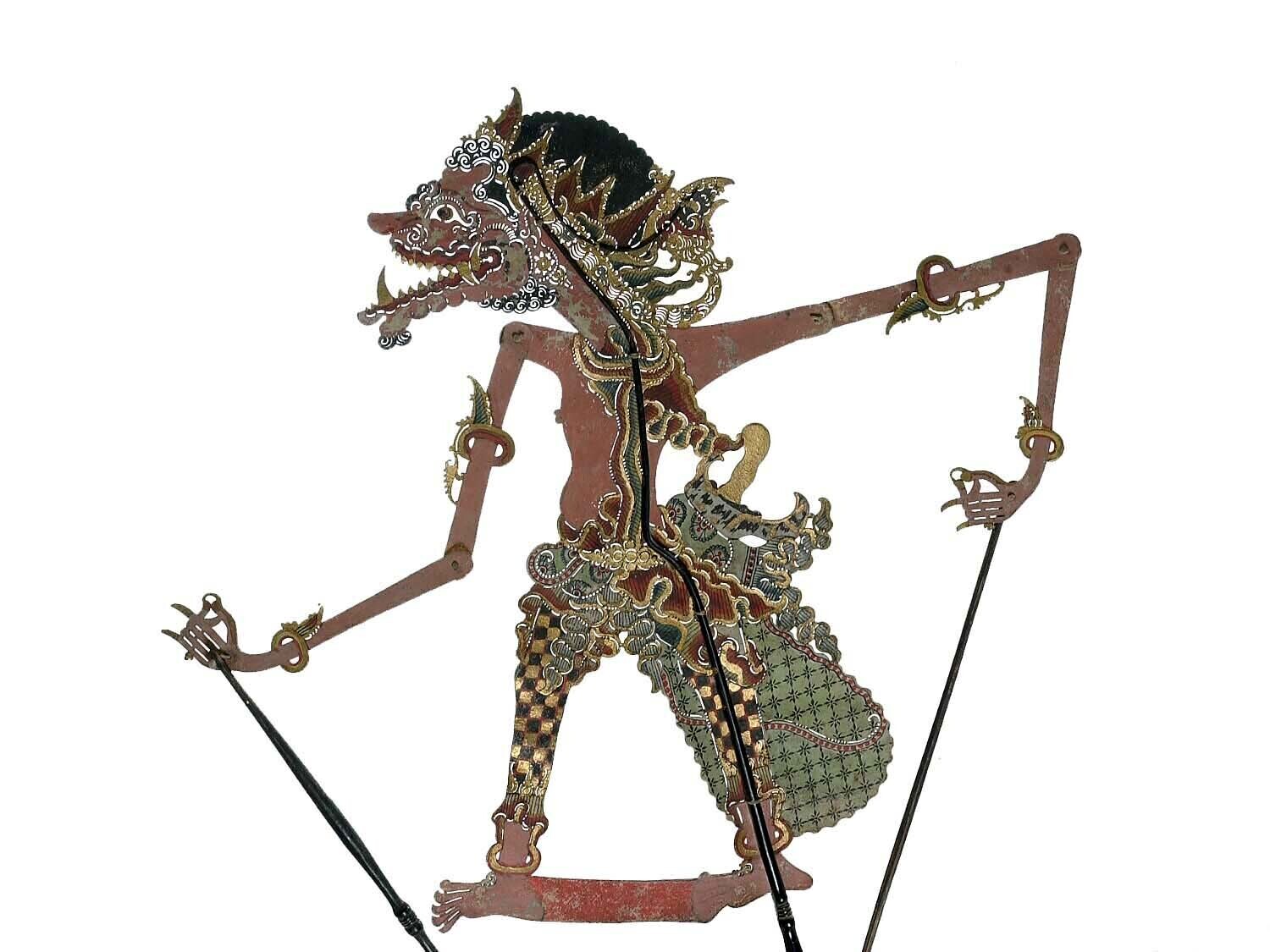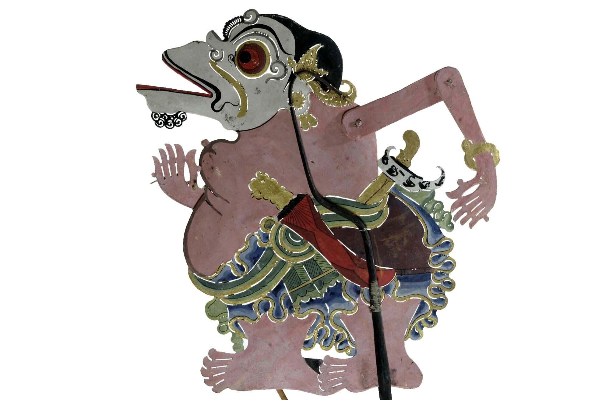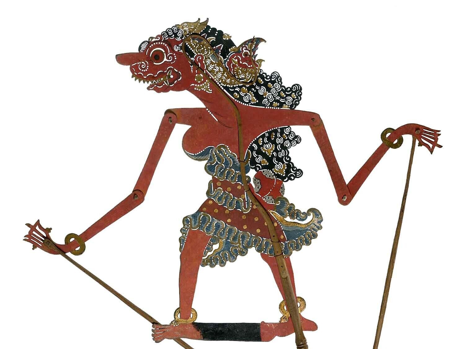 Wajangpop, demonenfiguur met wijd openstaande bek en...
