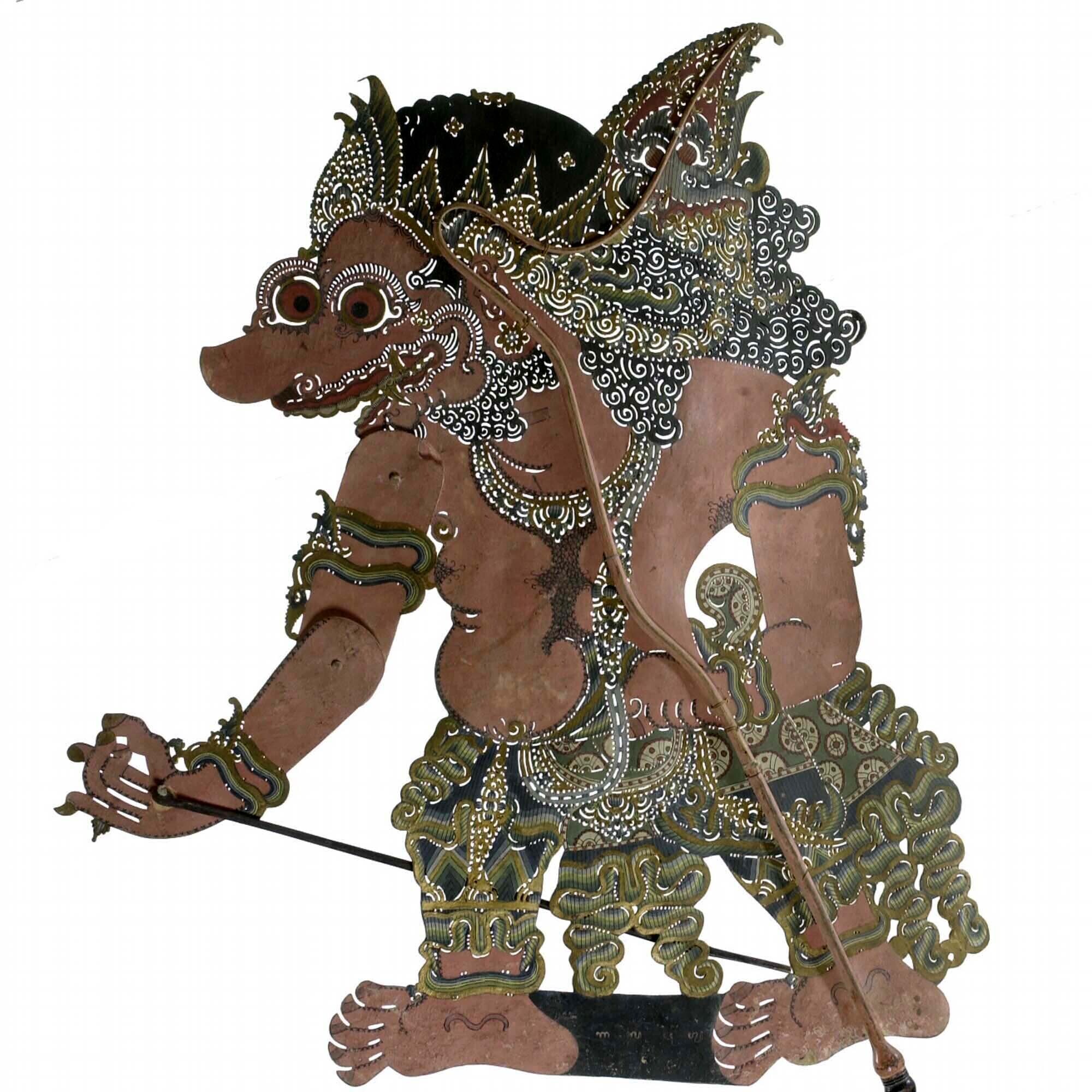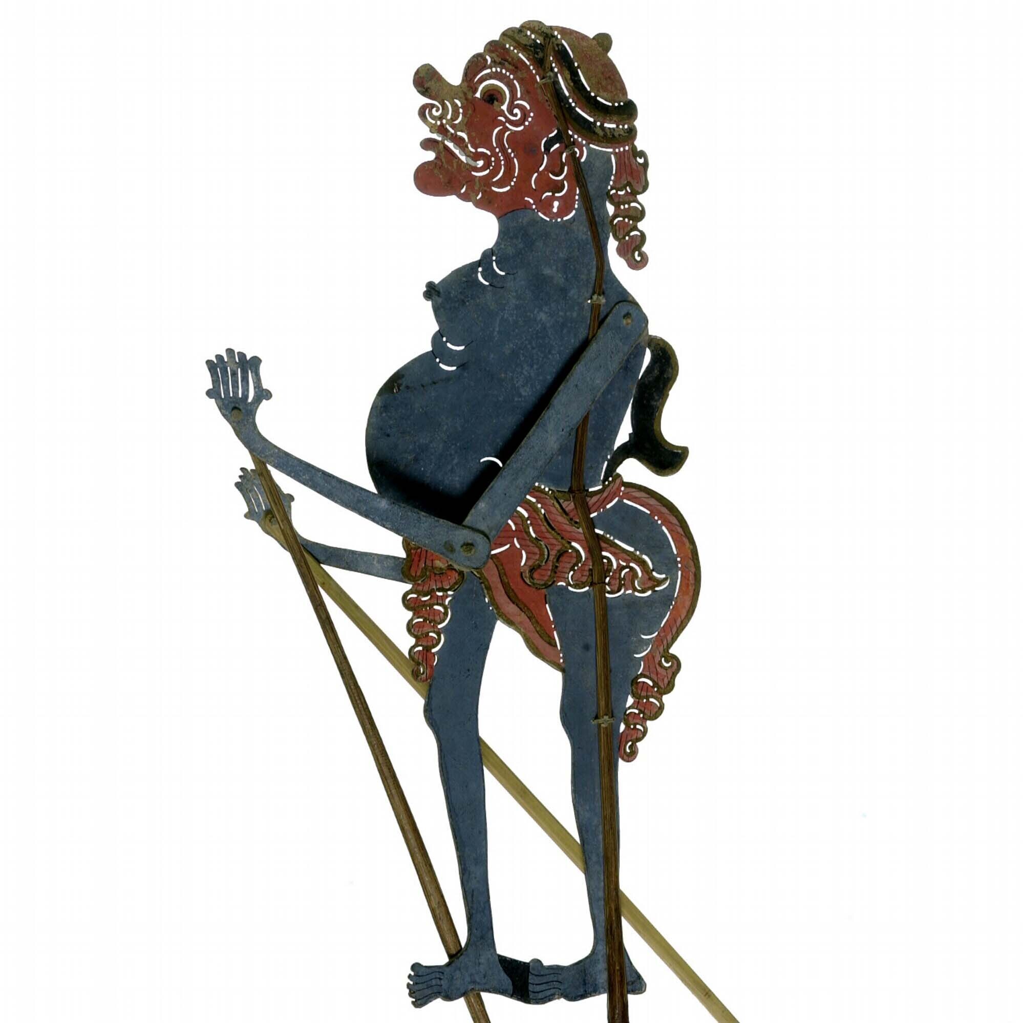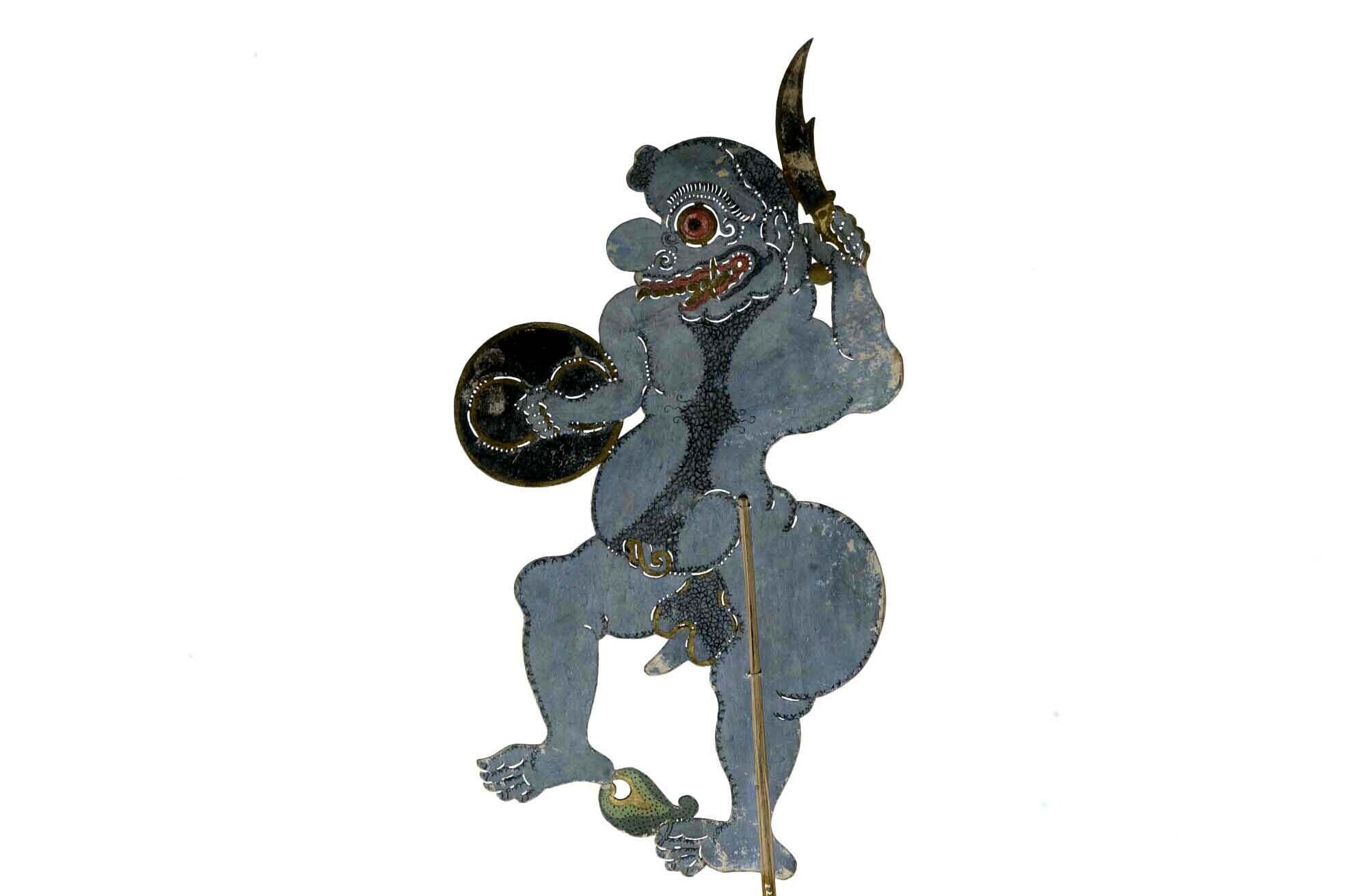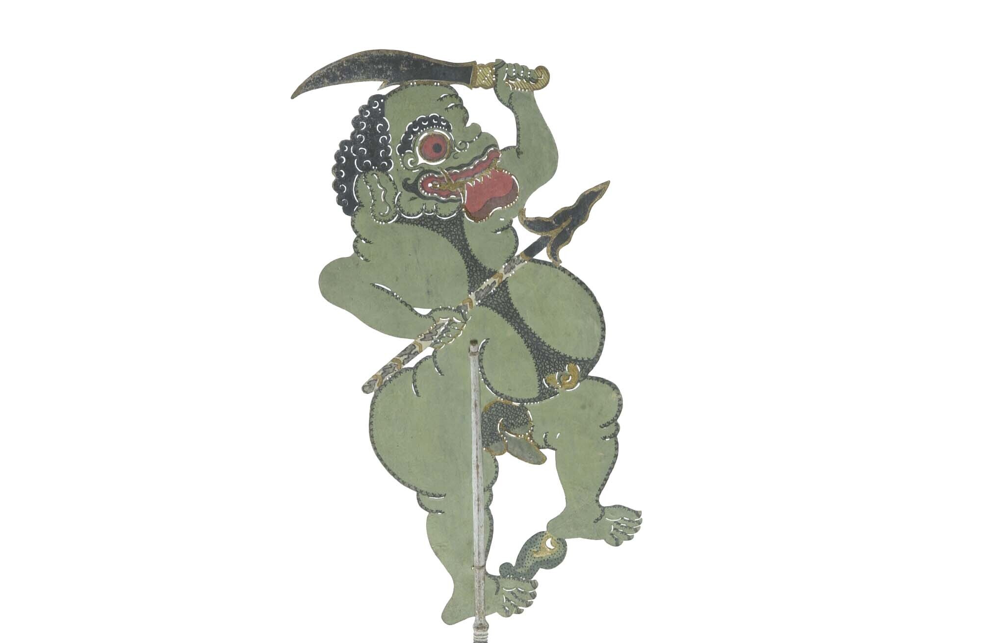Wajangpop, demonenfiguur met wijd openstaande bek en...