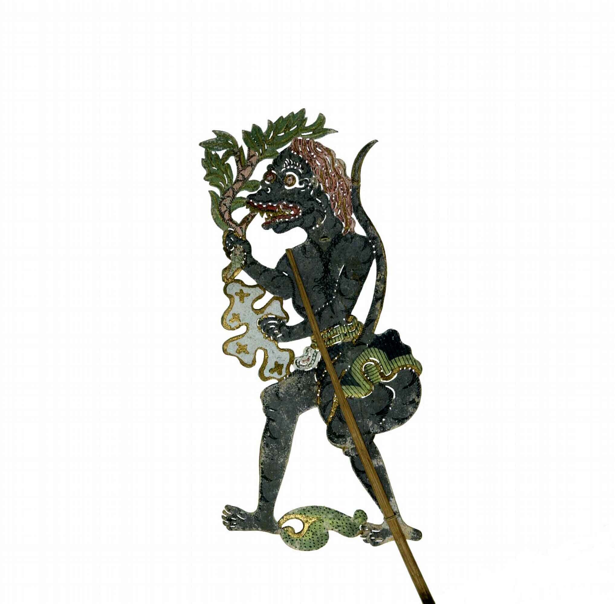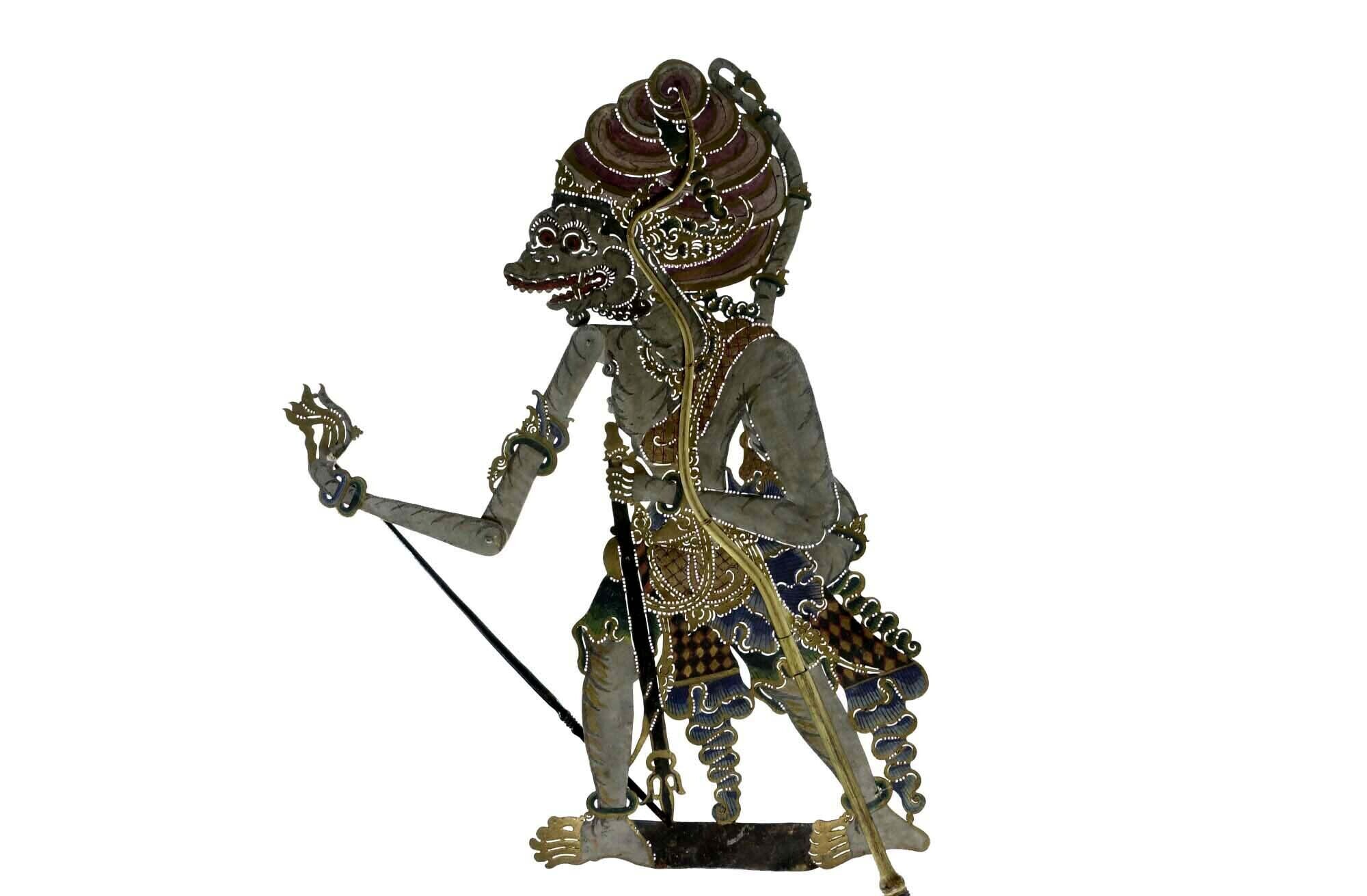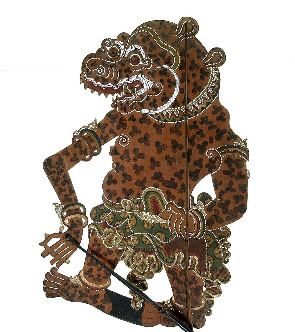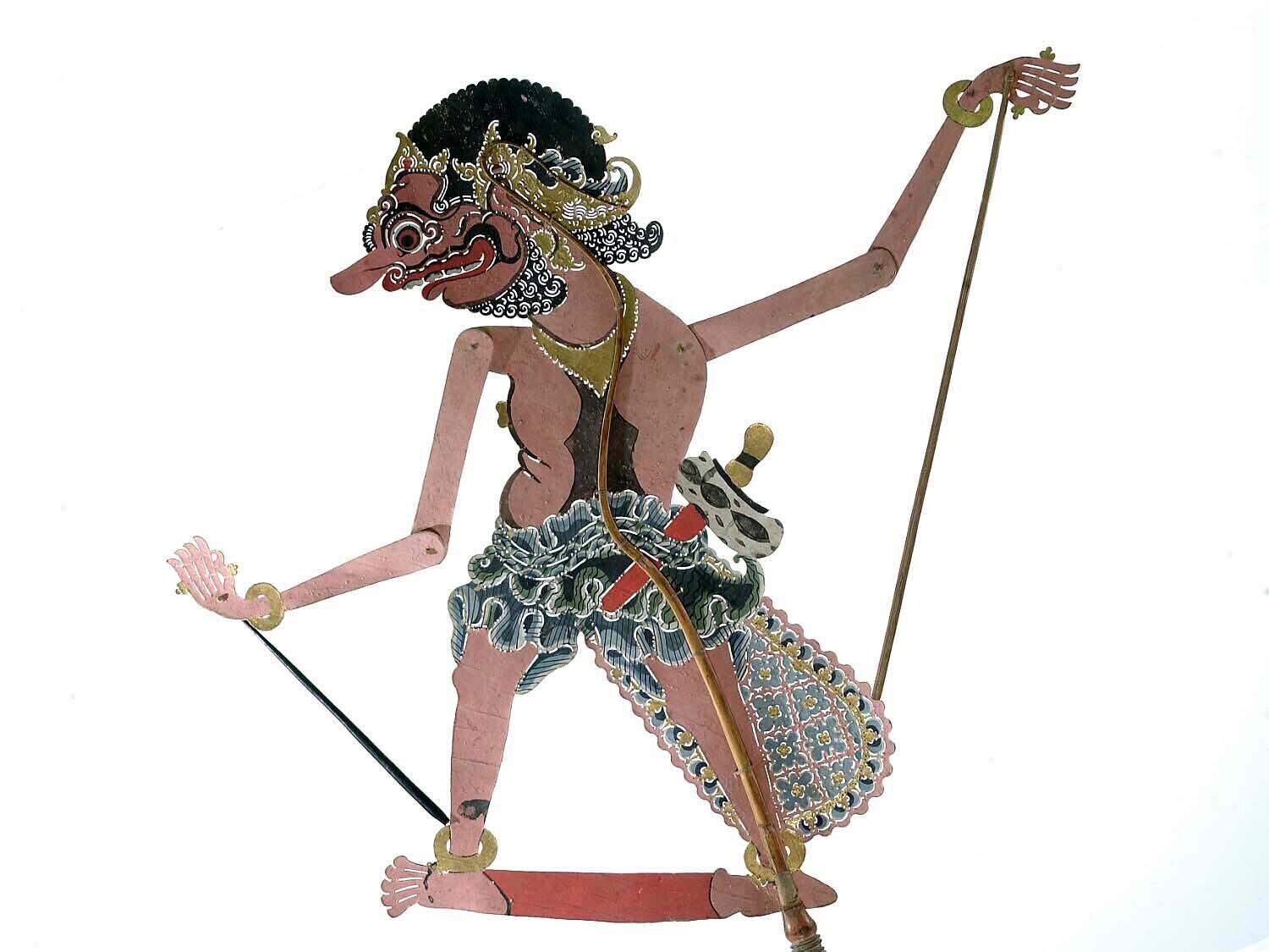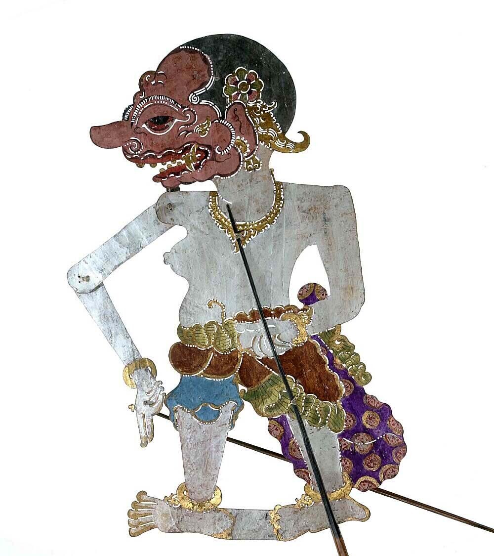Wajangpop, demonenfiguur met wijd openstaande bek en...