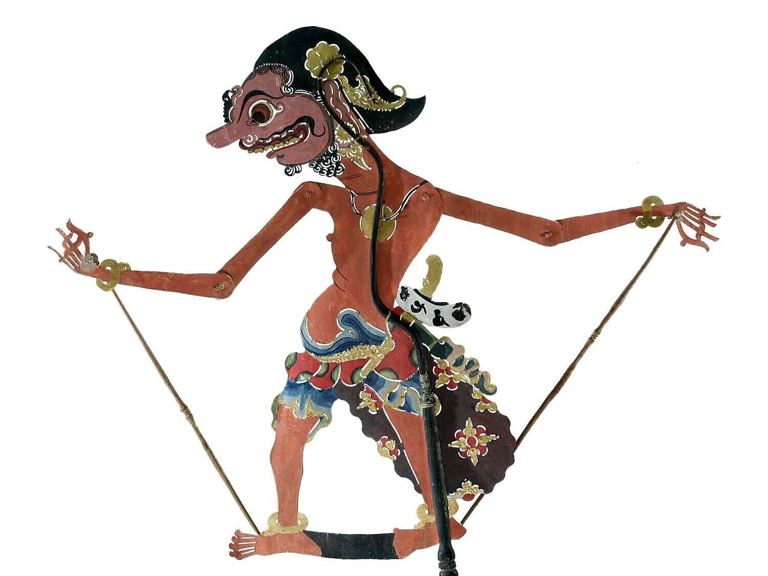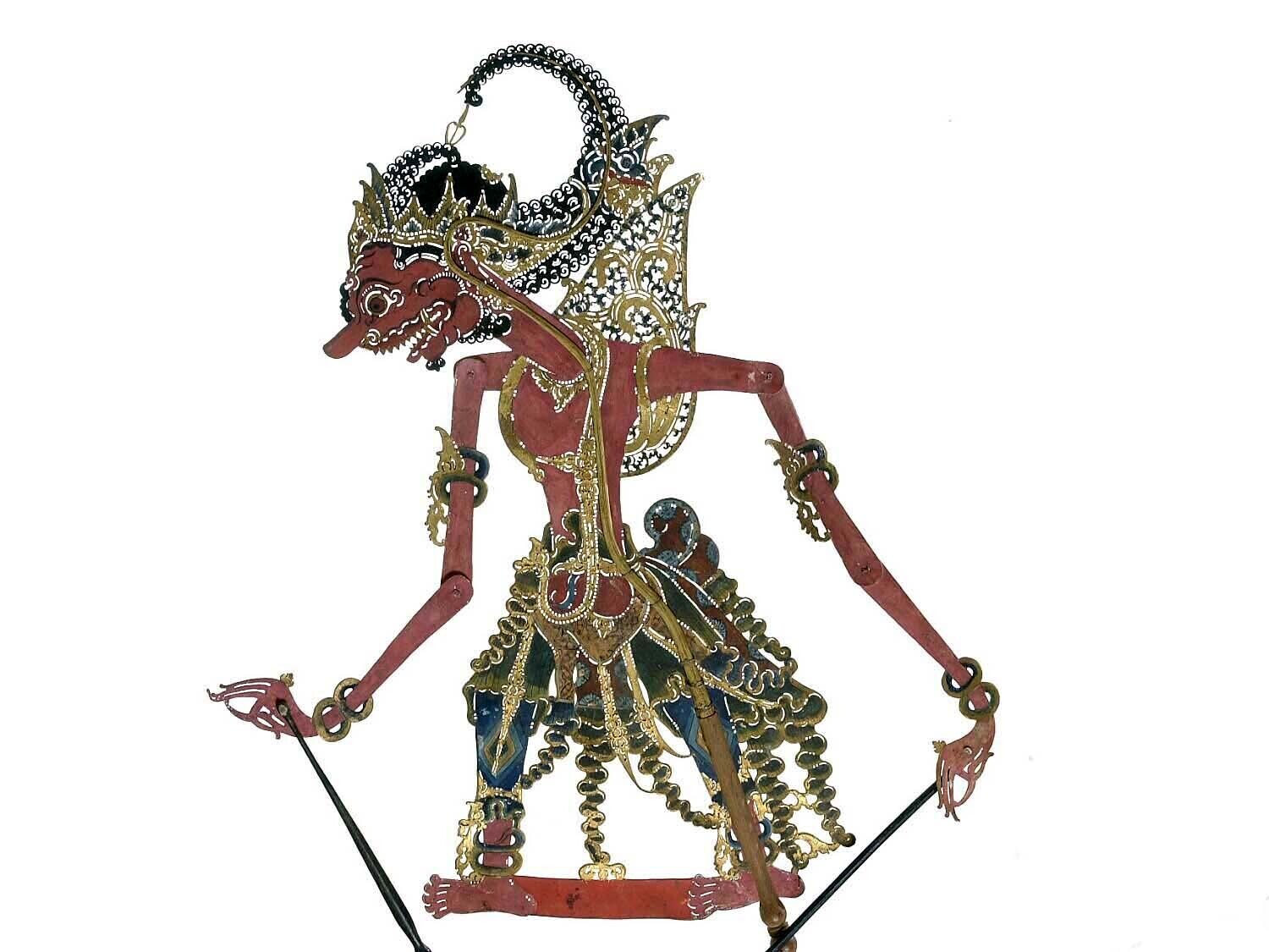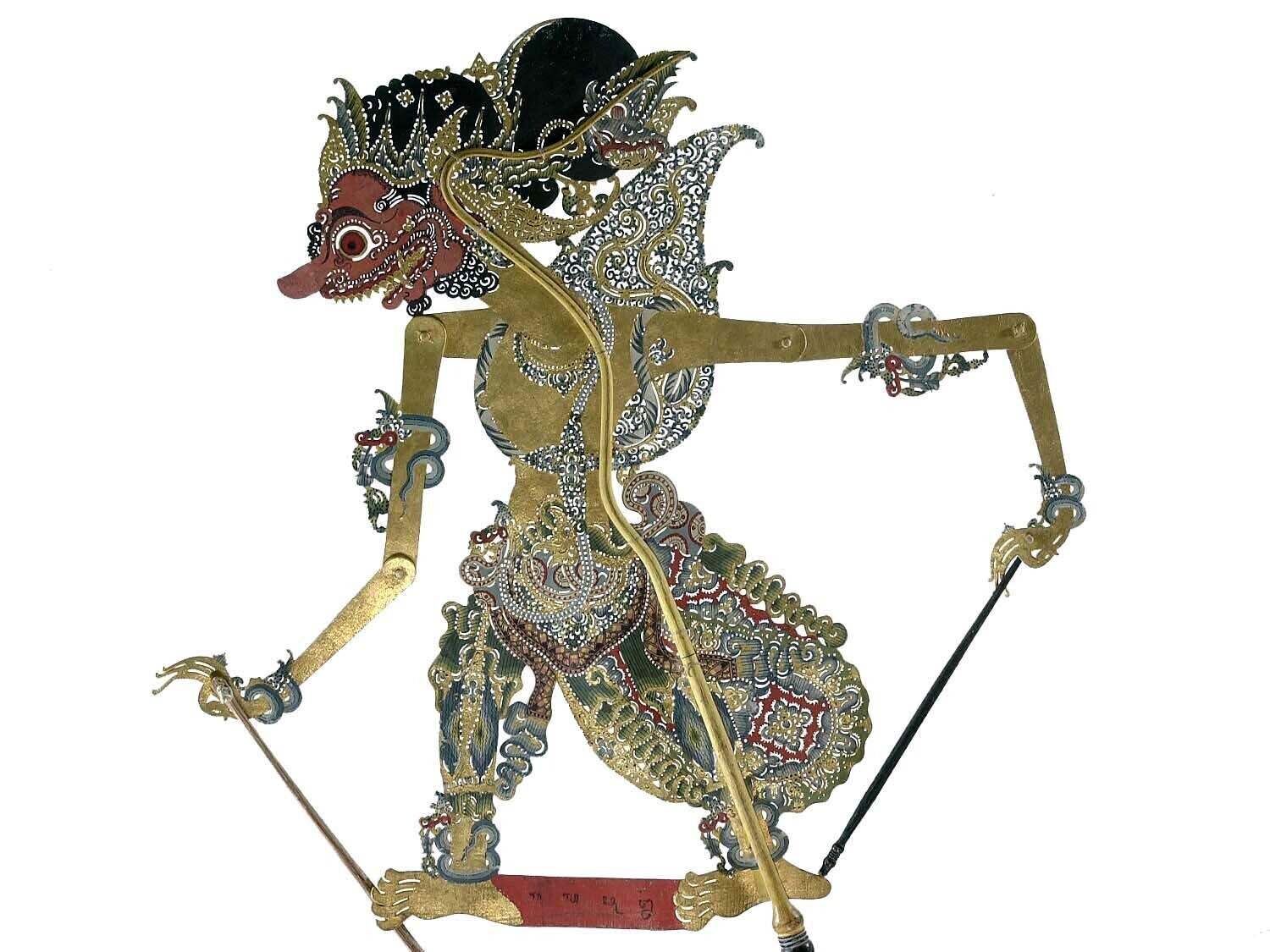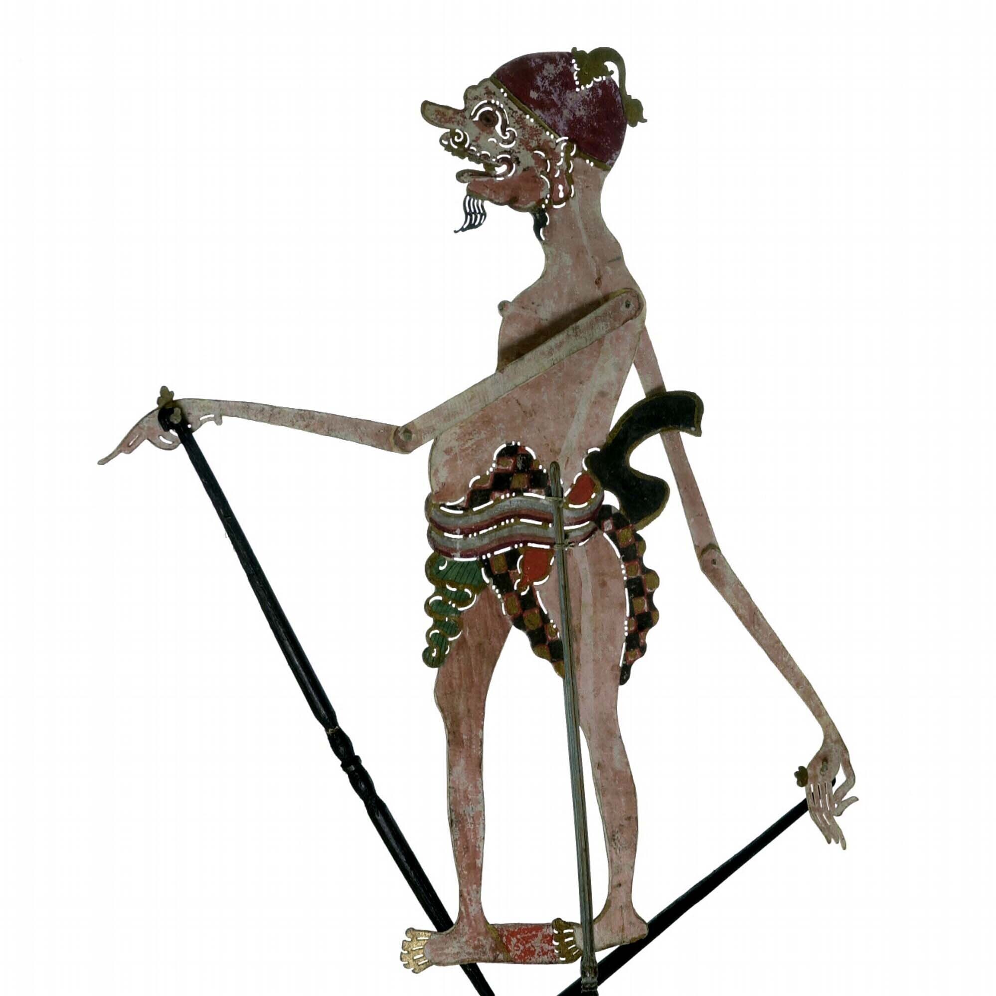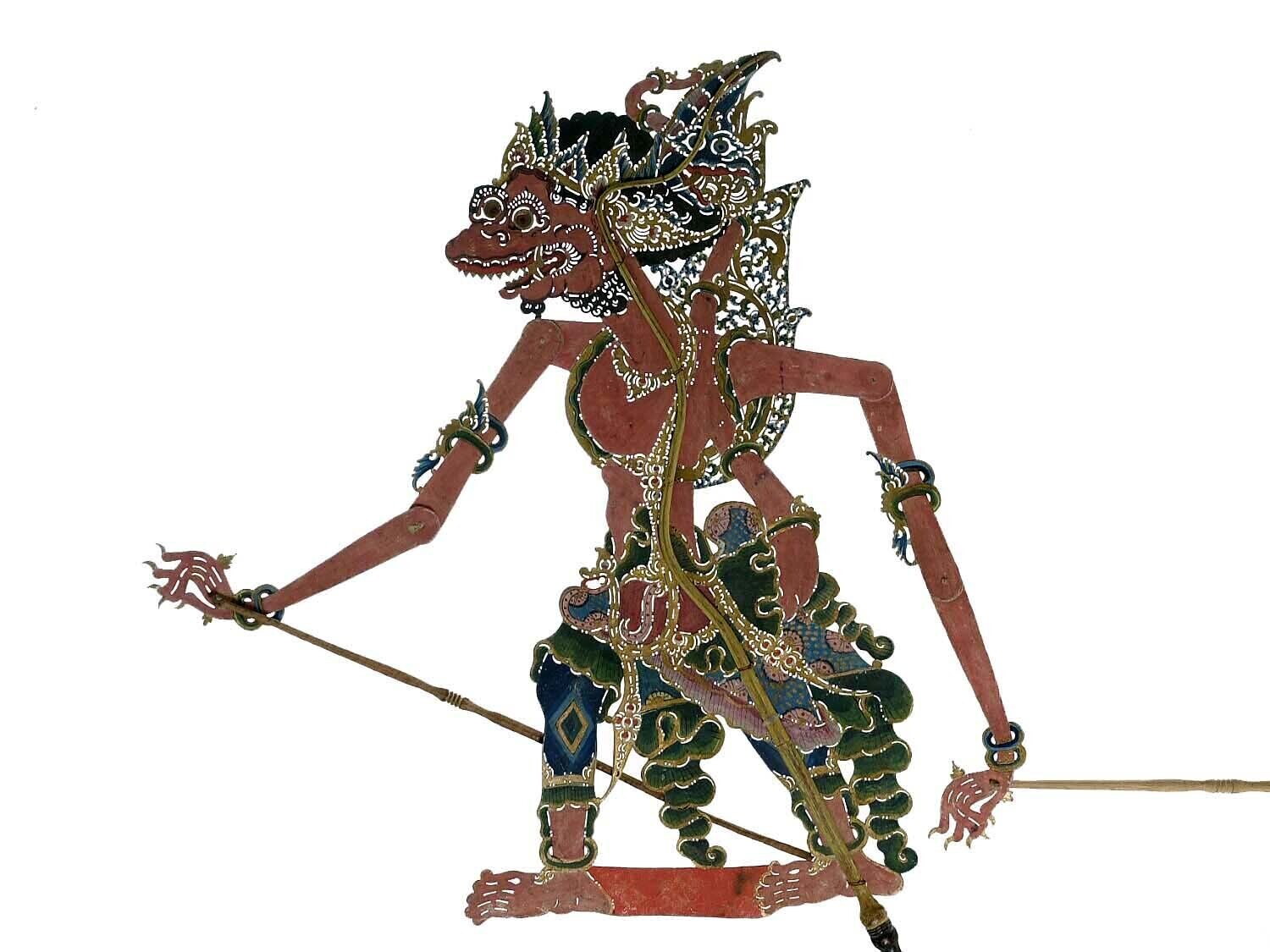 Wajangpop, demonenfiguur met wijd openstaande bek en...