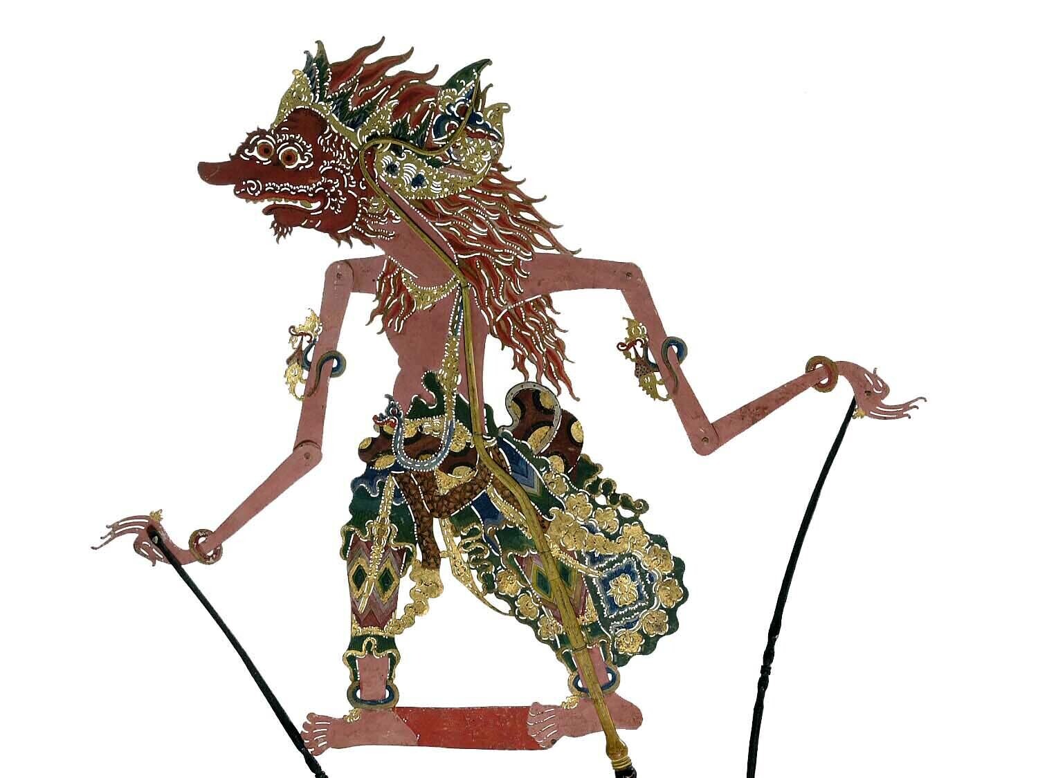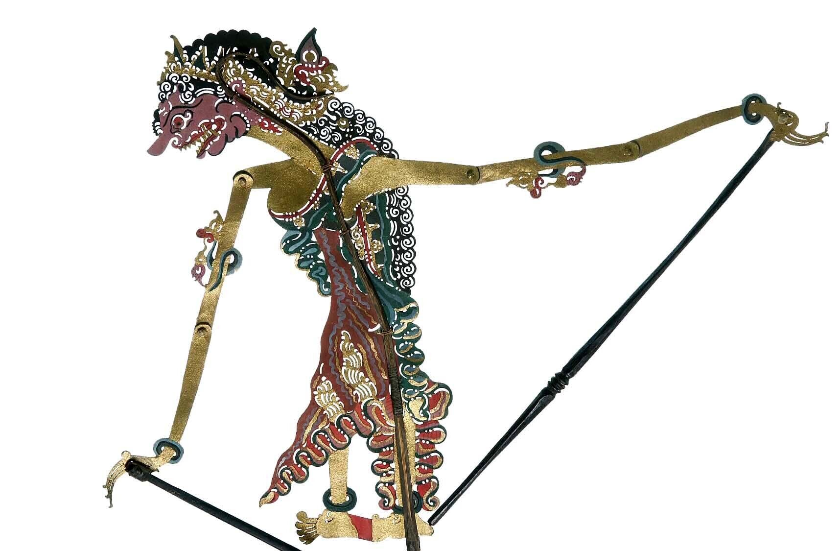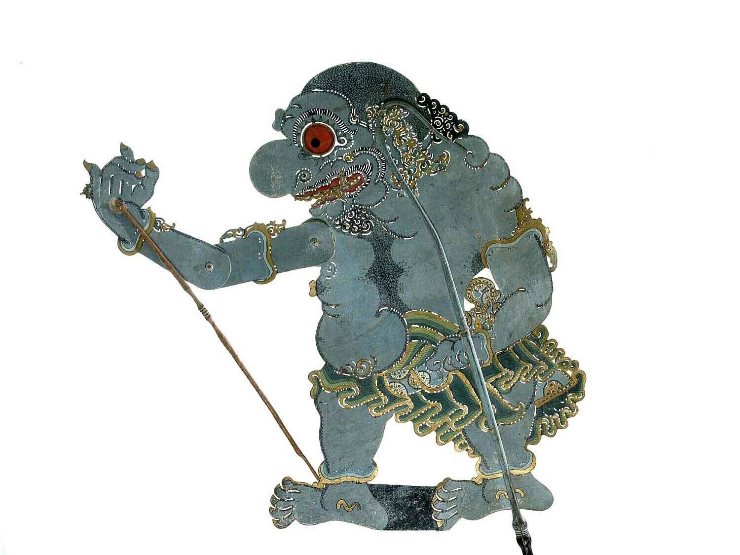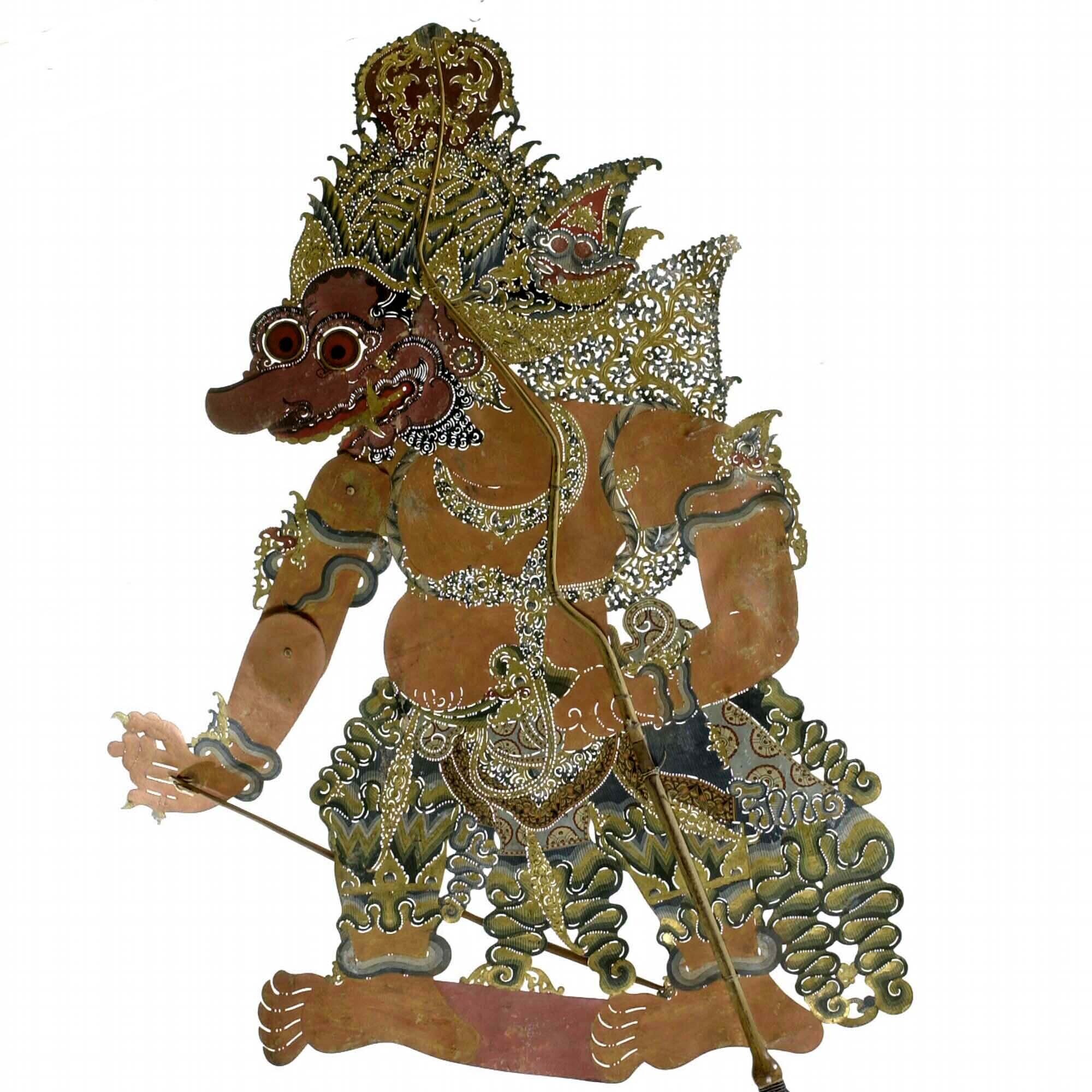 Wajangpop, demonenfiguur met wijd openstaande bek en...