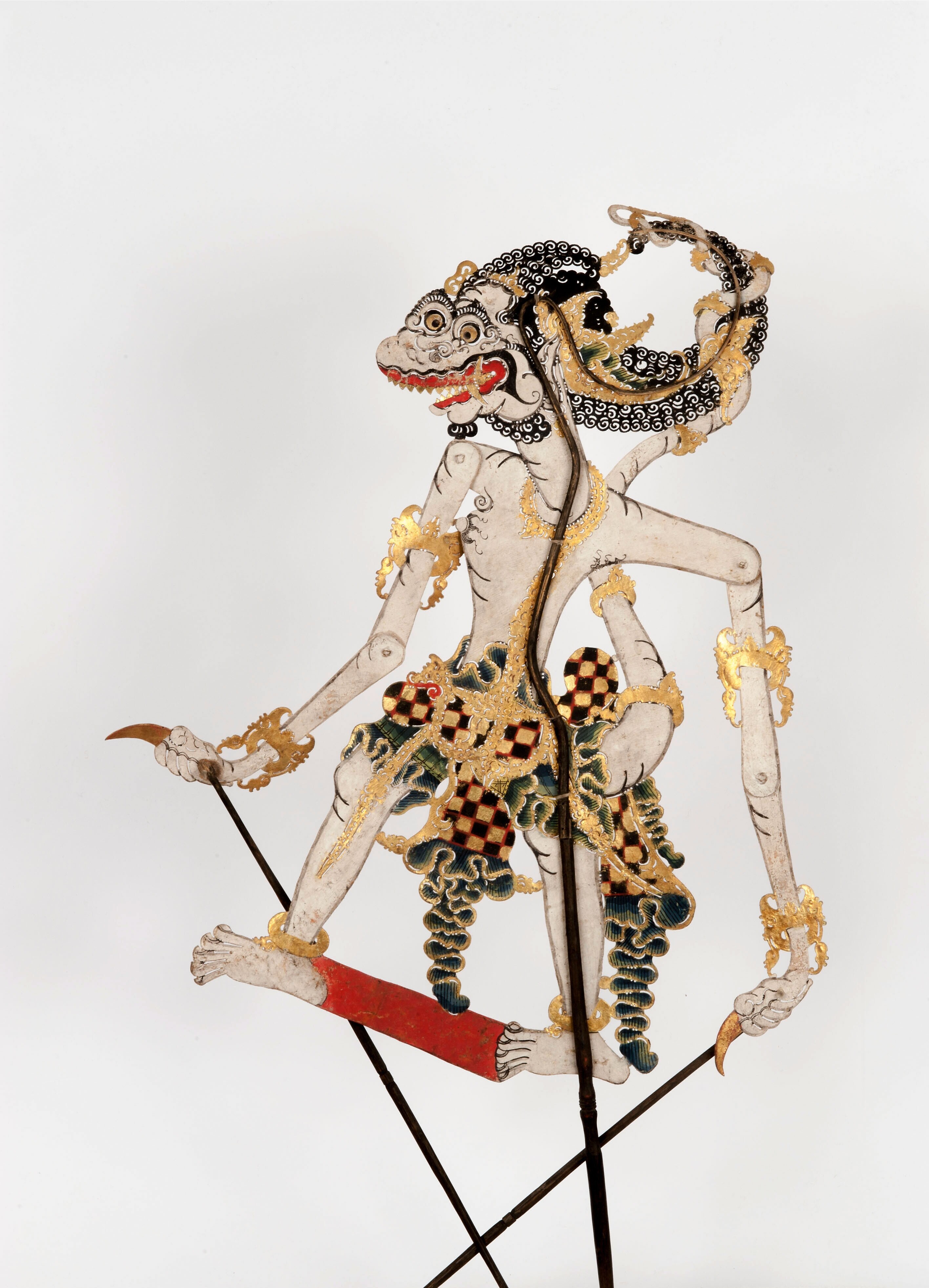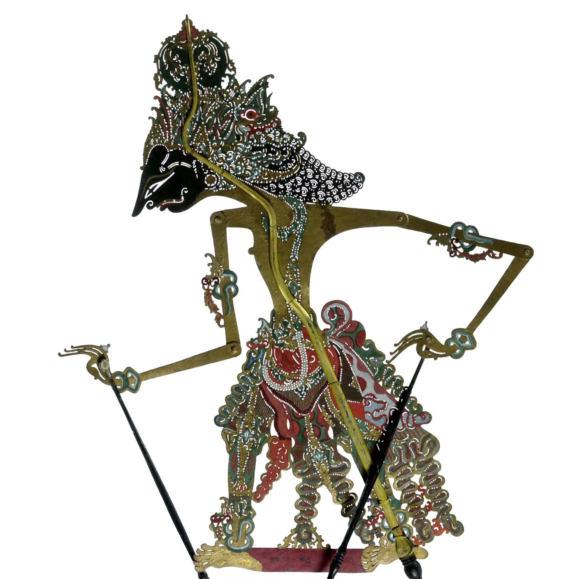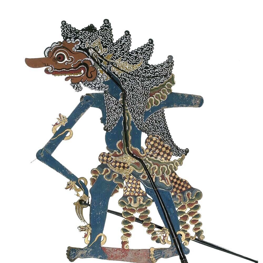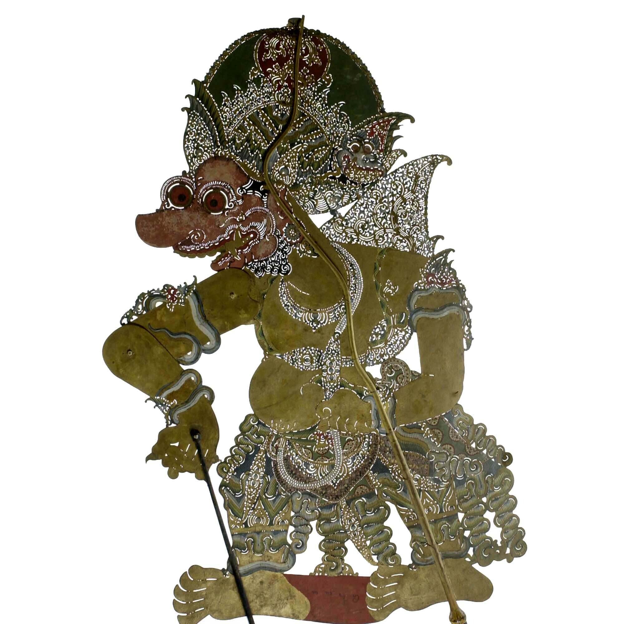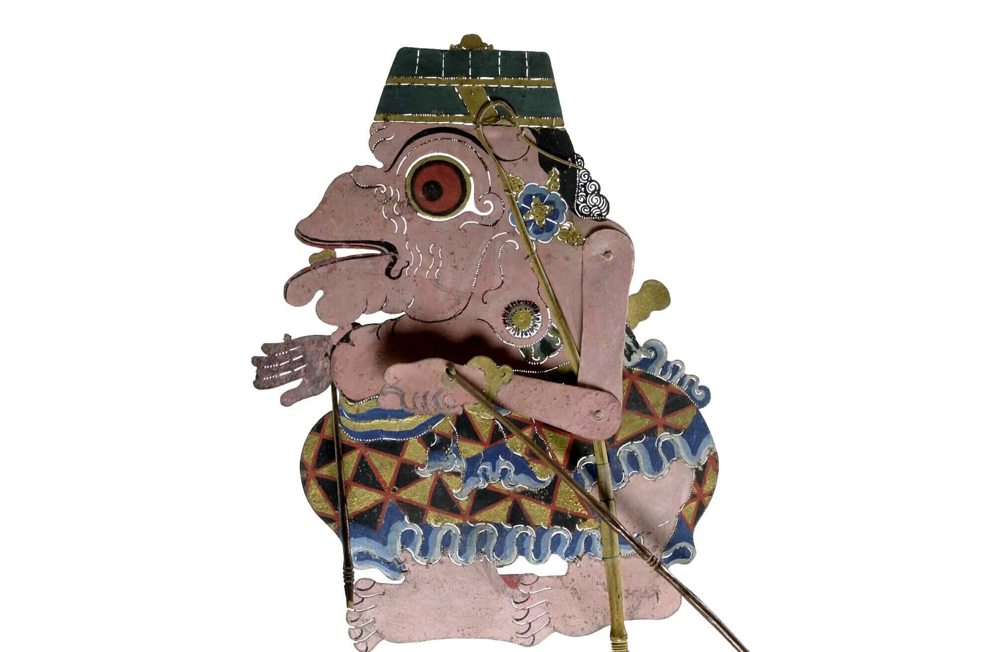 Wajangpop, demonenfiguur met wijd openstaande bek en...