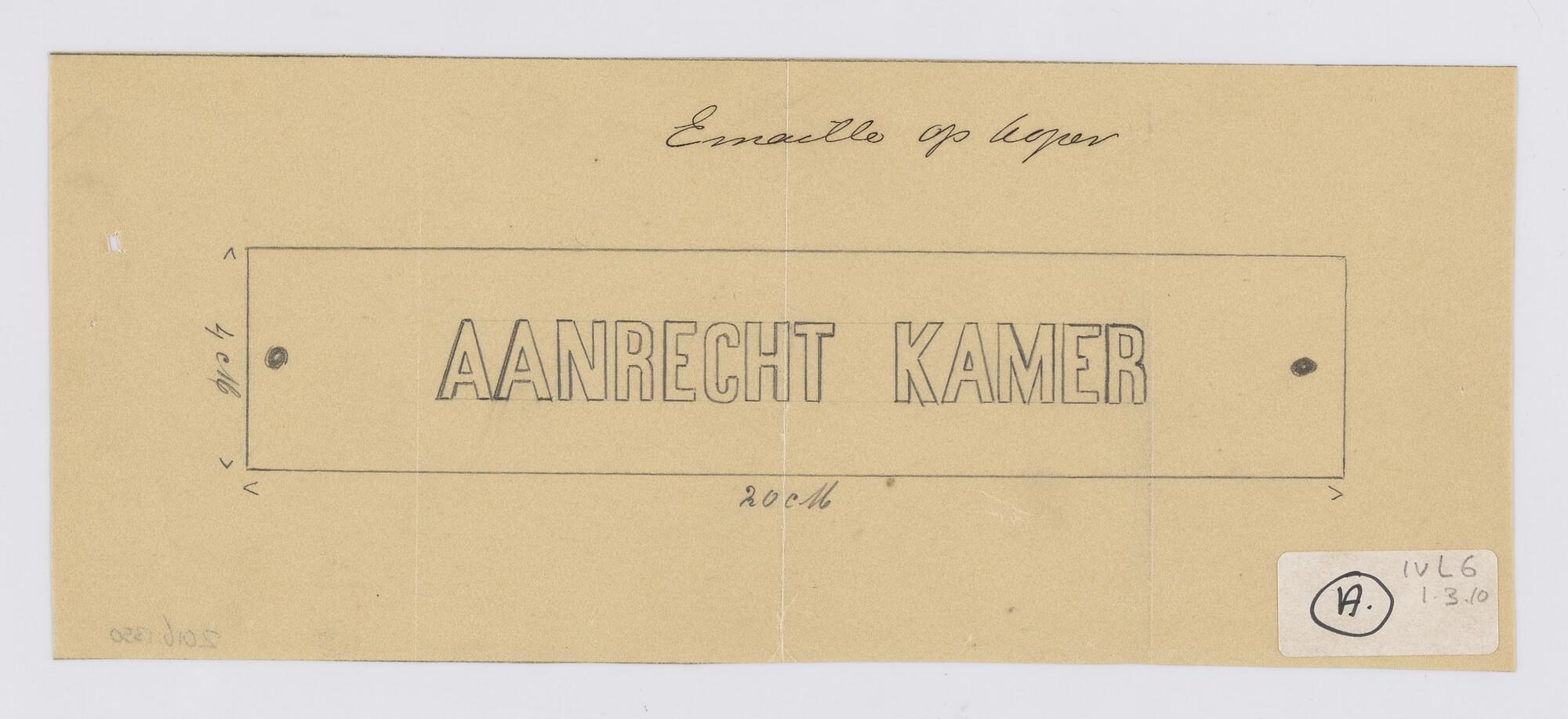 'Aanrecht Kamer' voor ss. De Carpentier en Van Dieme...
