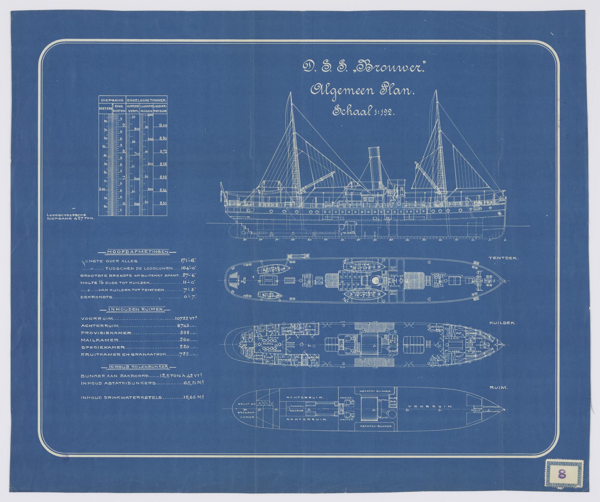 Algemeen plan van het passagiersschip ss. 'Brouwer' ...