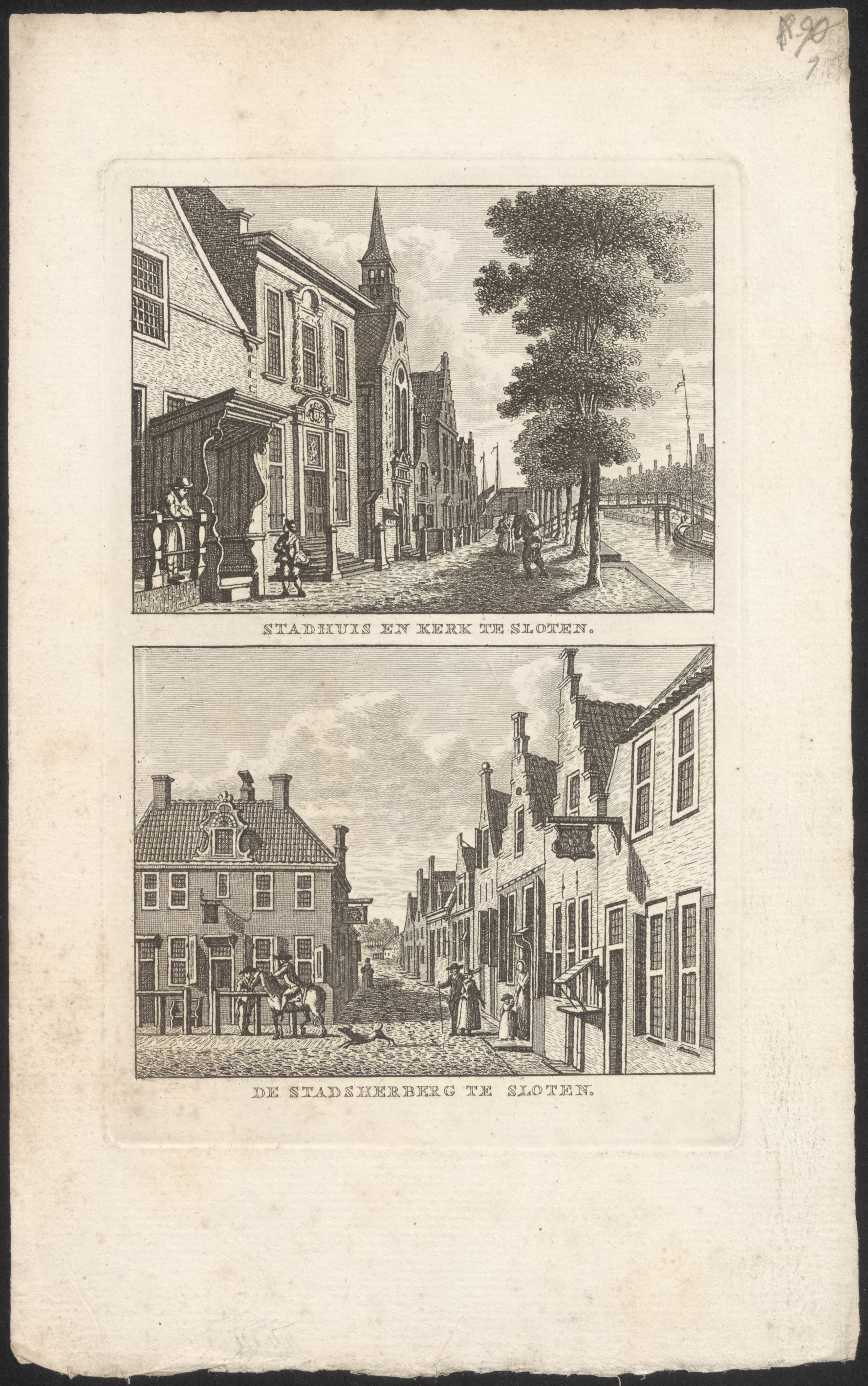 Stadhuis en kerk te Sloten en de stadsherberg te Sloten