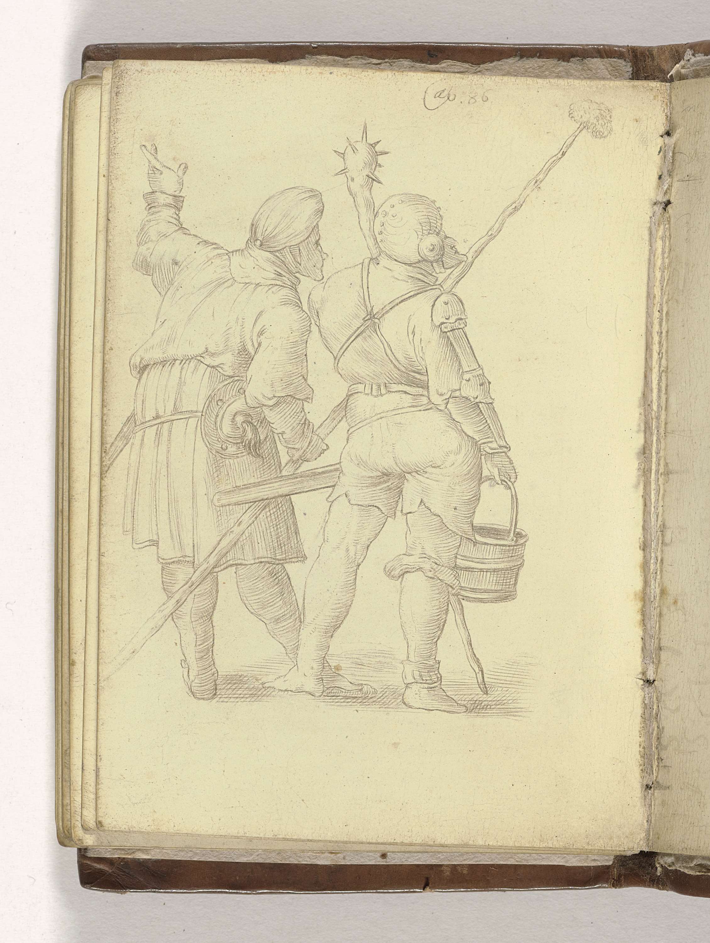 Twee staande romeinse soldaten, op de rug gezien