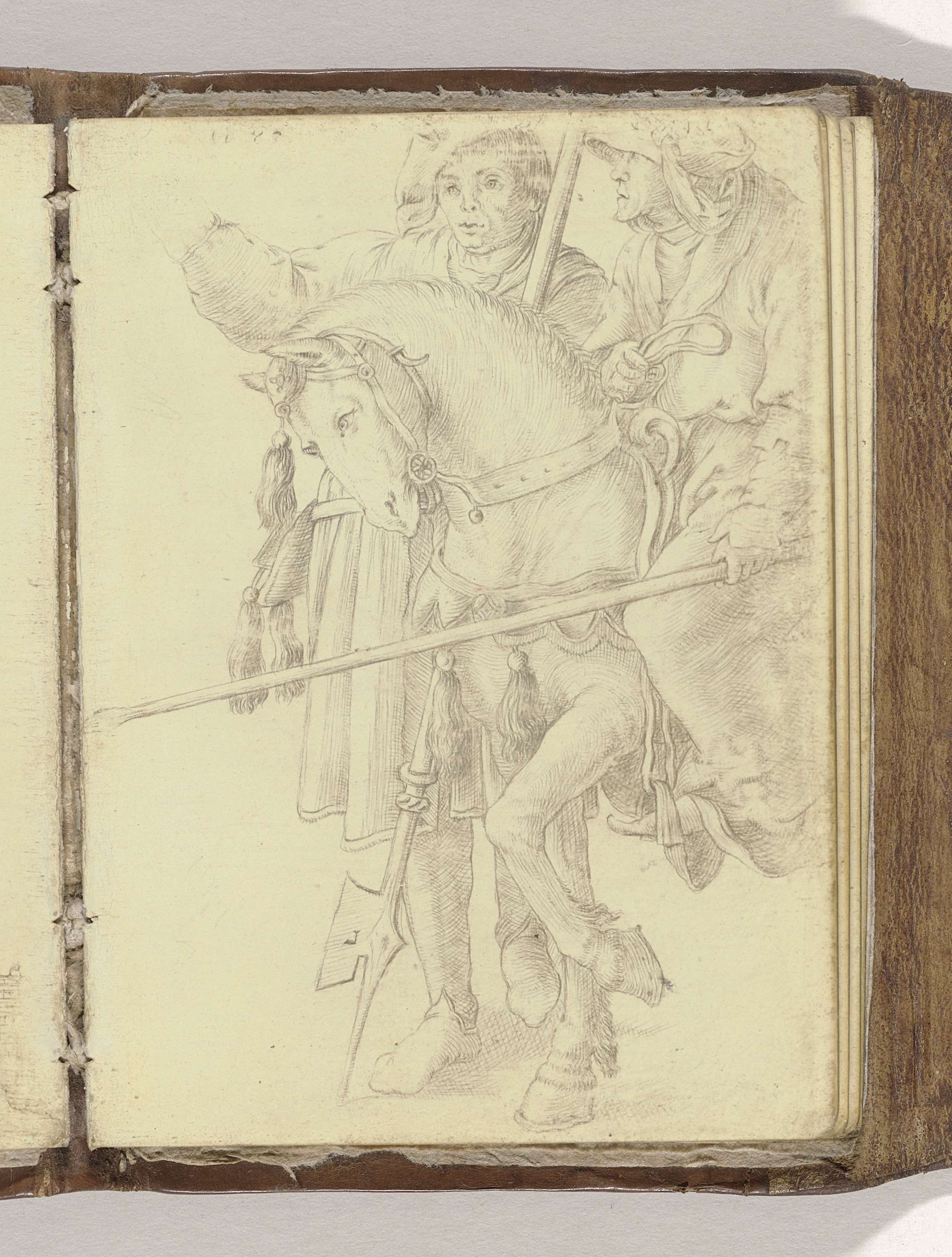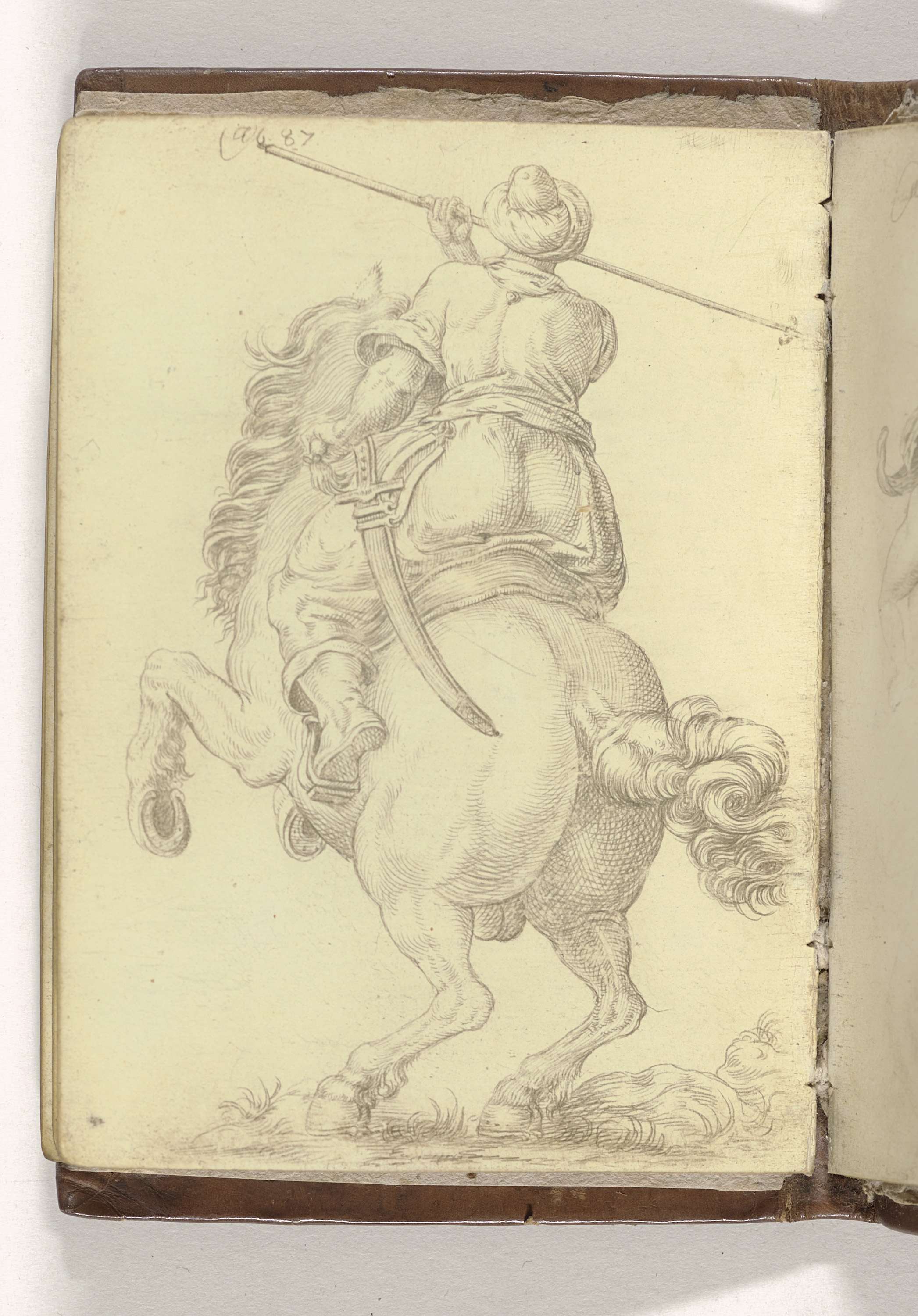 Ruiter met lans, het paard van achteren gezien