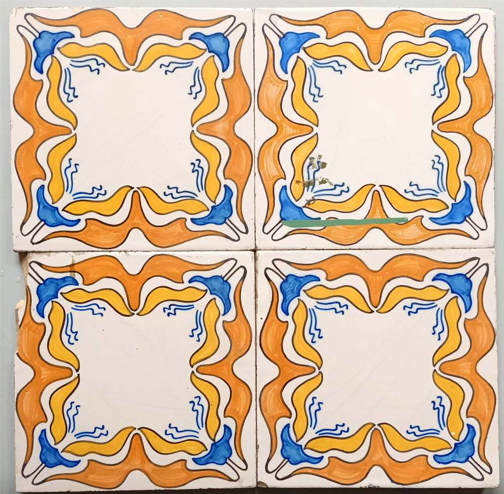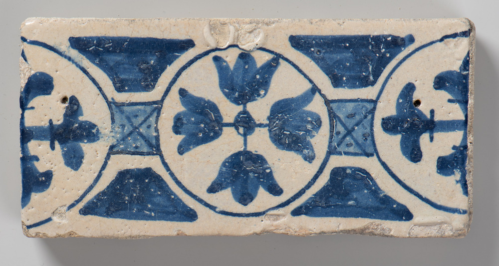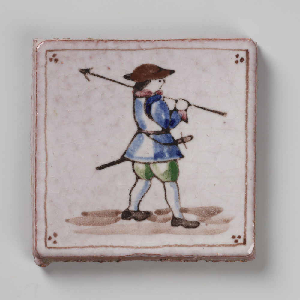 tegel van keramiek met tinglazuur, voorstellende: or...