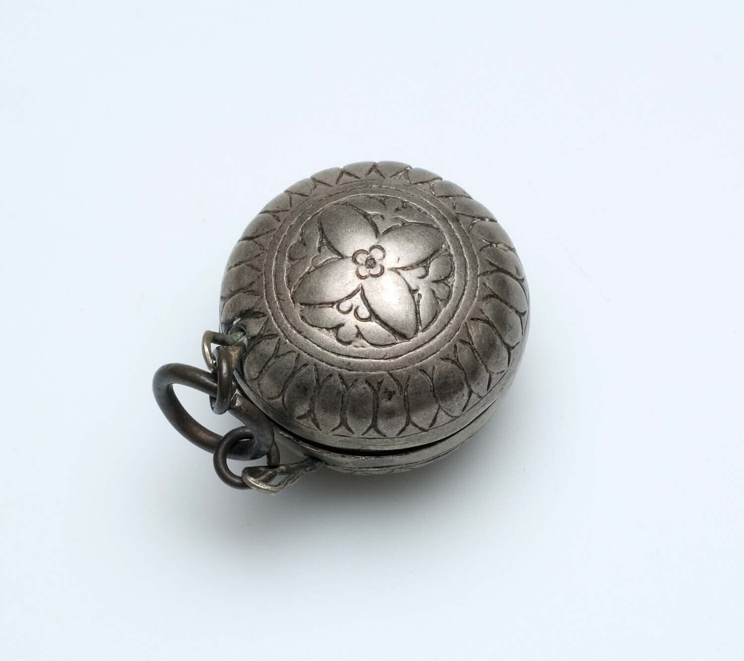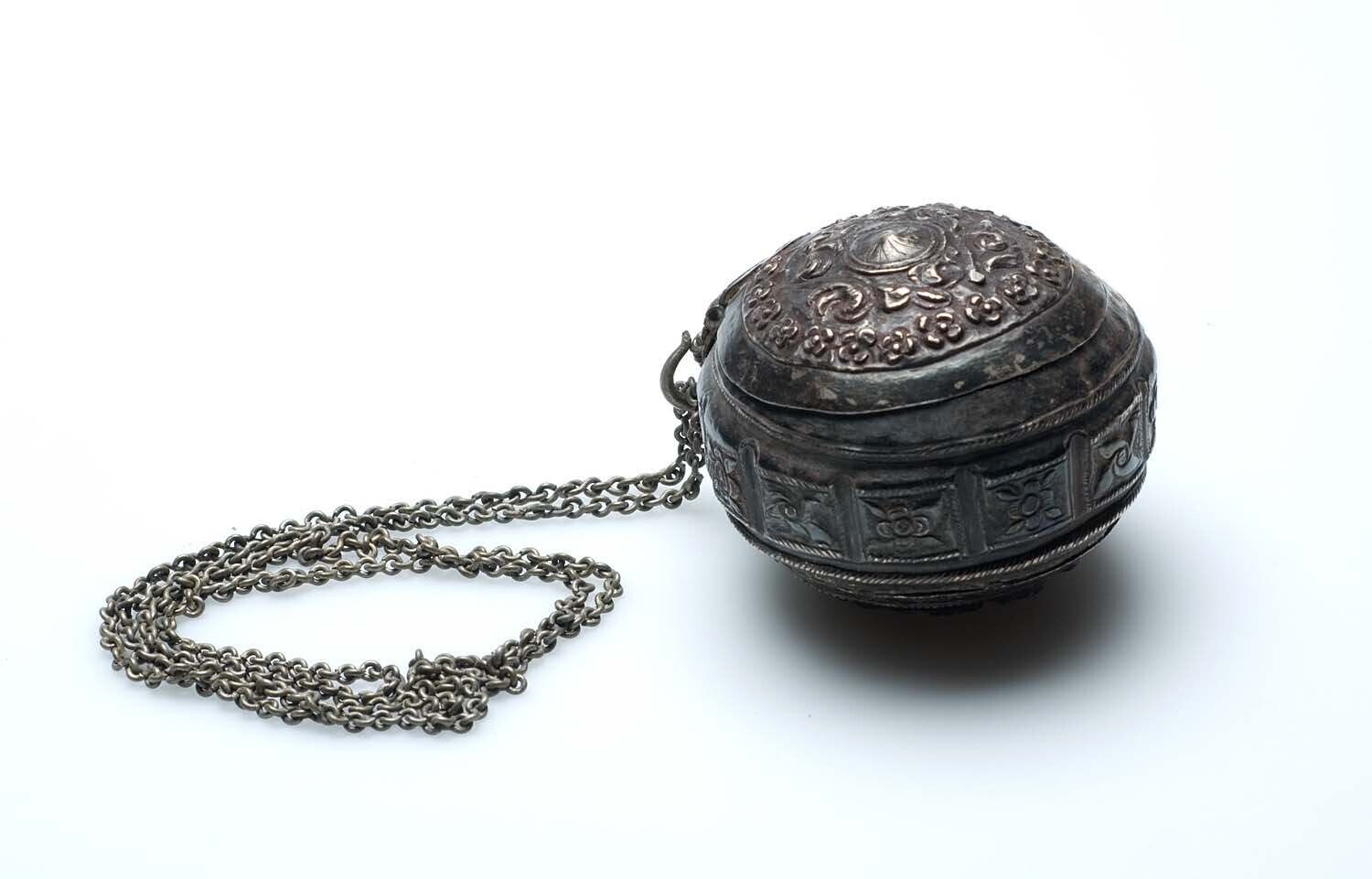 Zilveren bolvormig kalkdoos