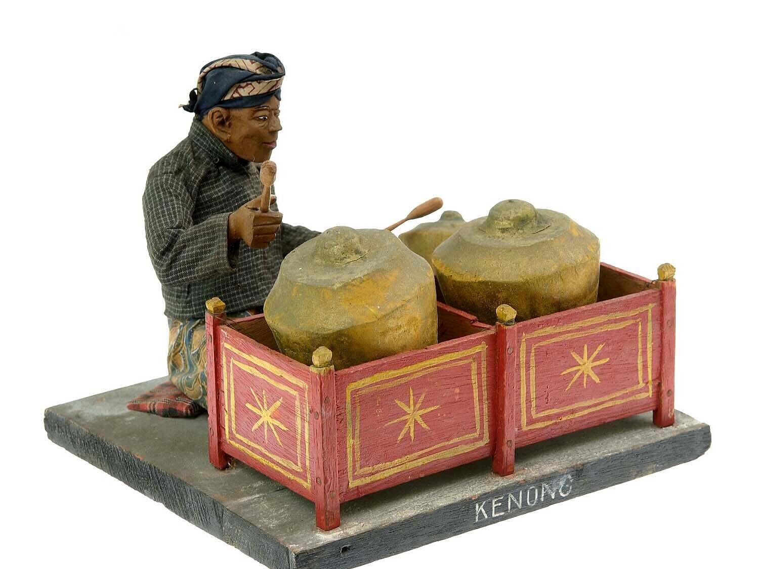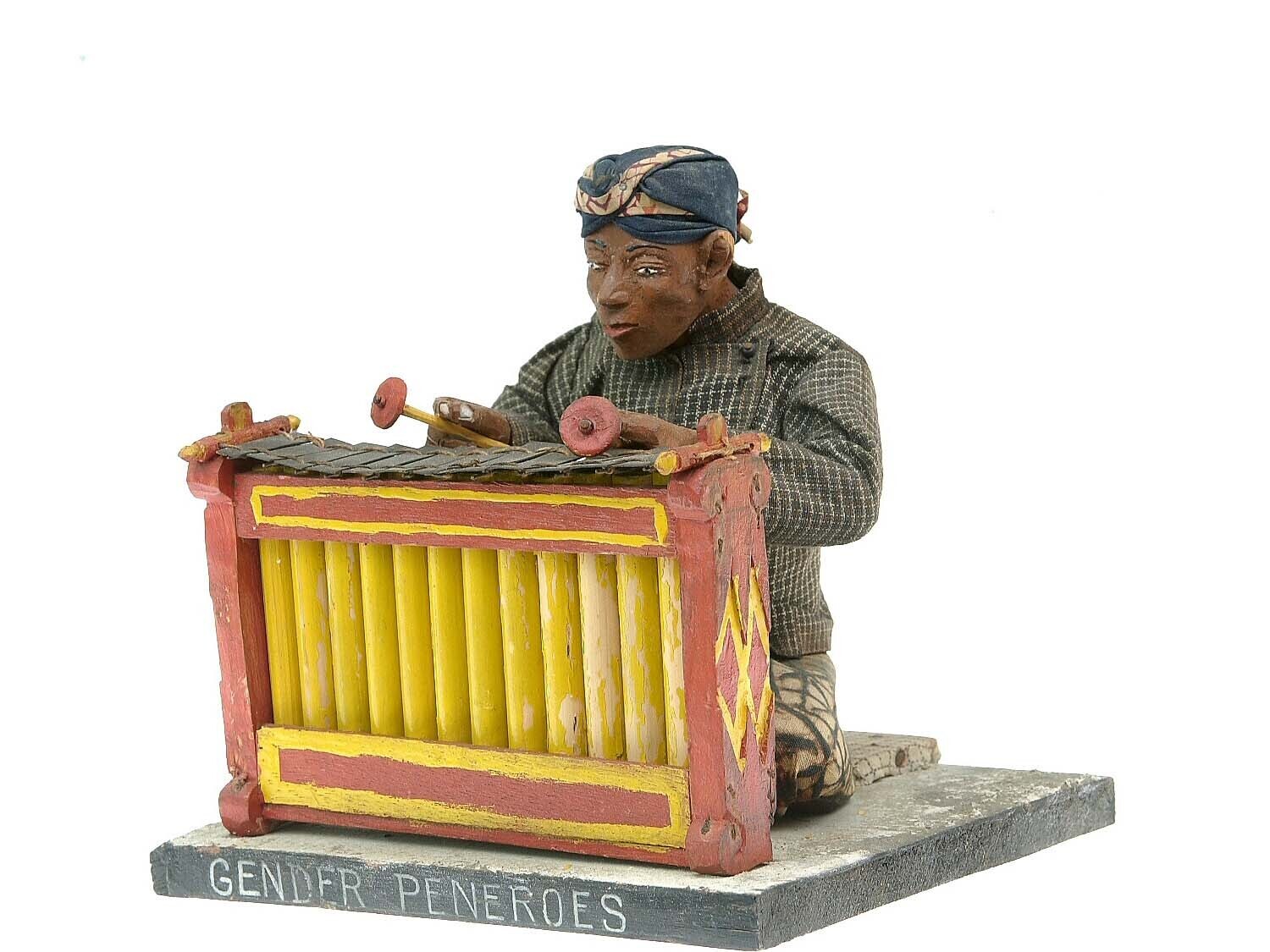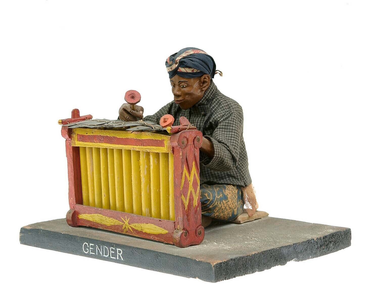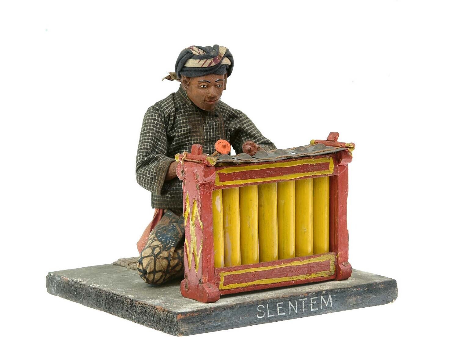 Wooden model of a percussion instrument, with player