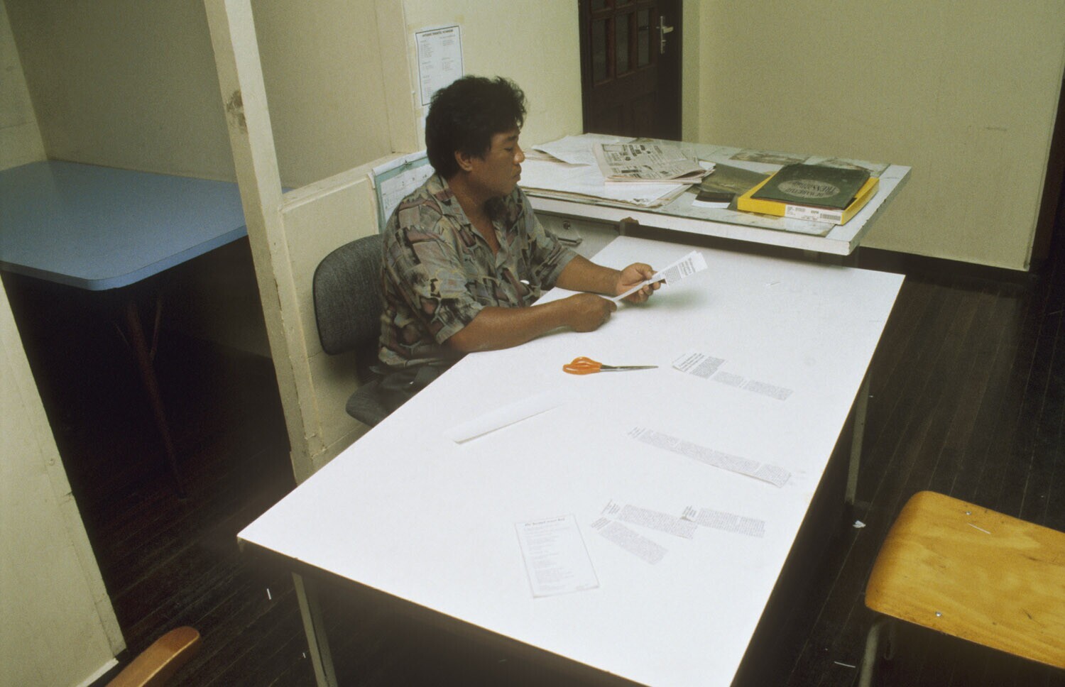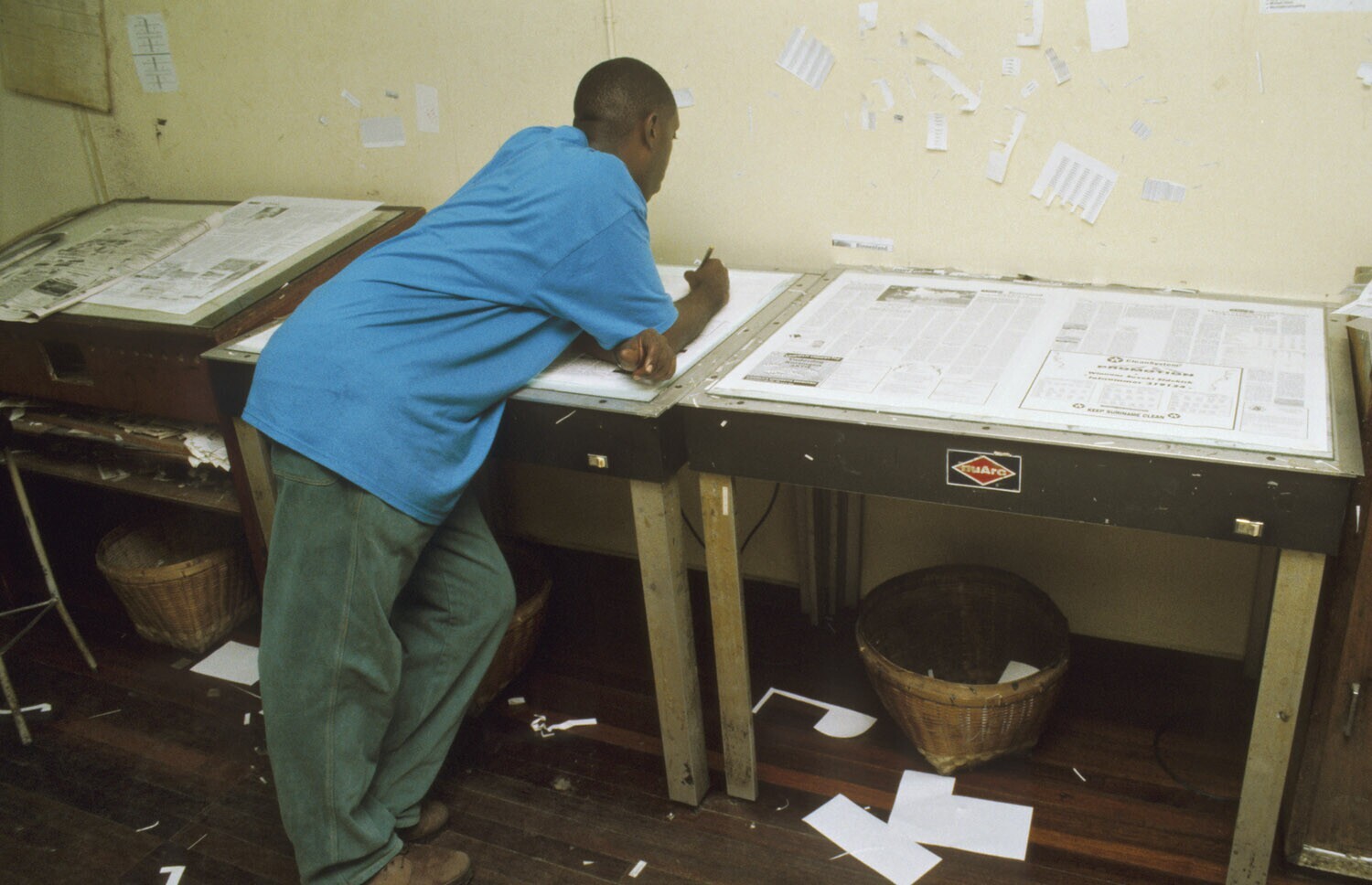 Paramaribo; kantoor dagblad De Ware Tijd; opmaak