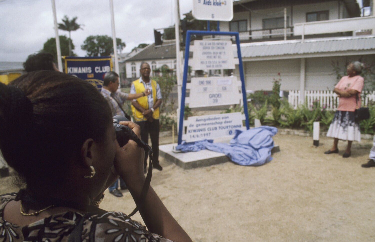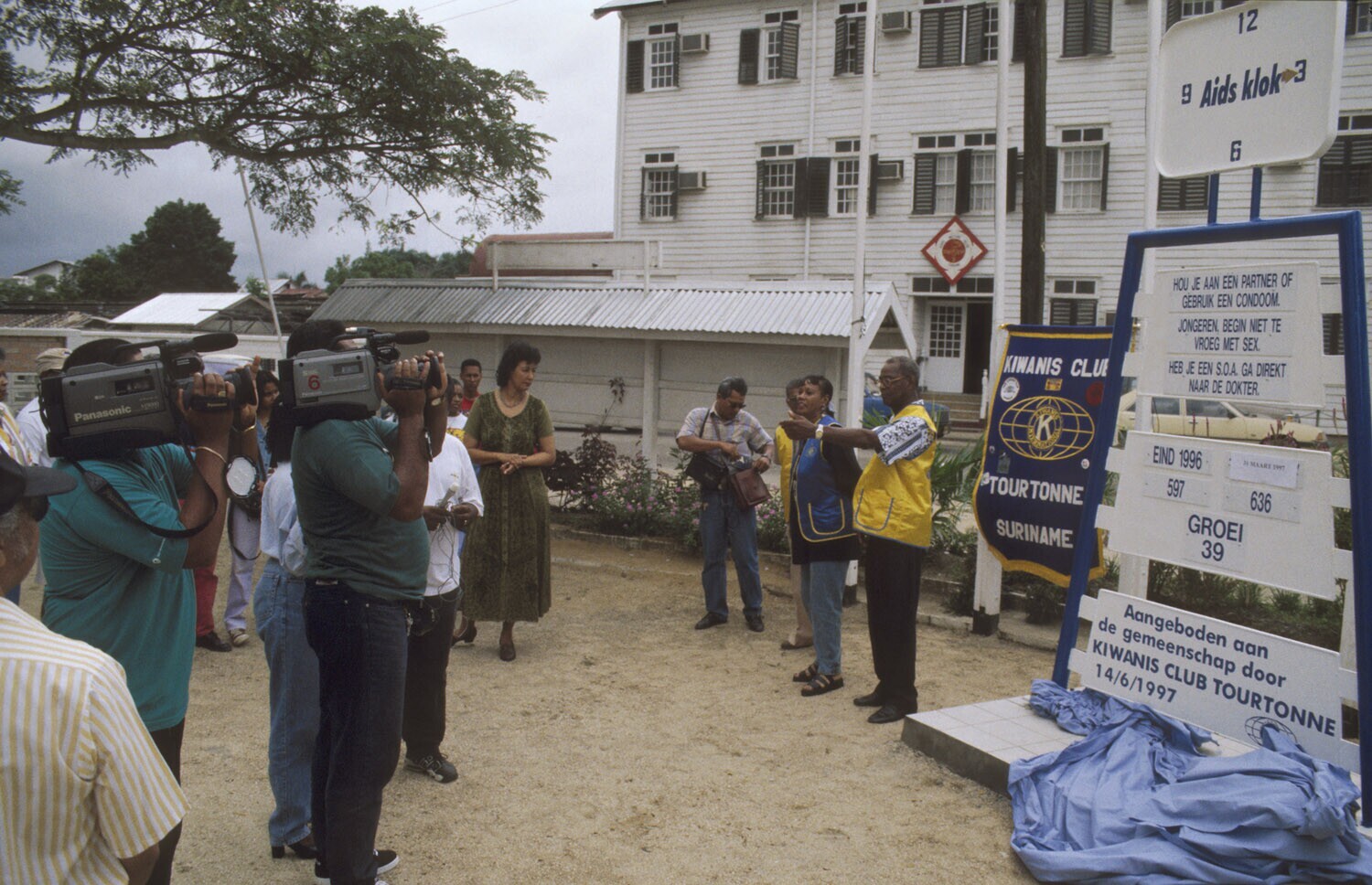 Paramaribo, wijk Tourtonne; onthulling van AIDS-monu...