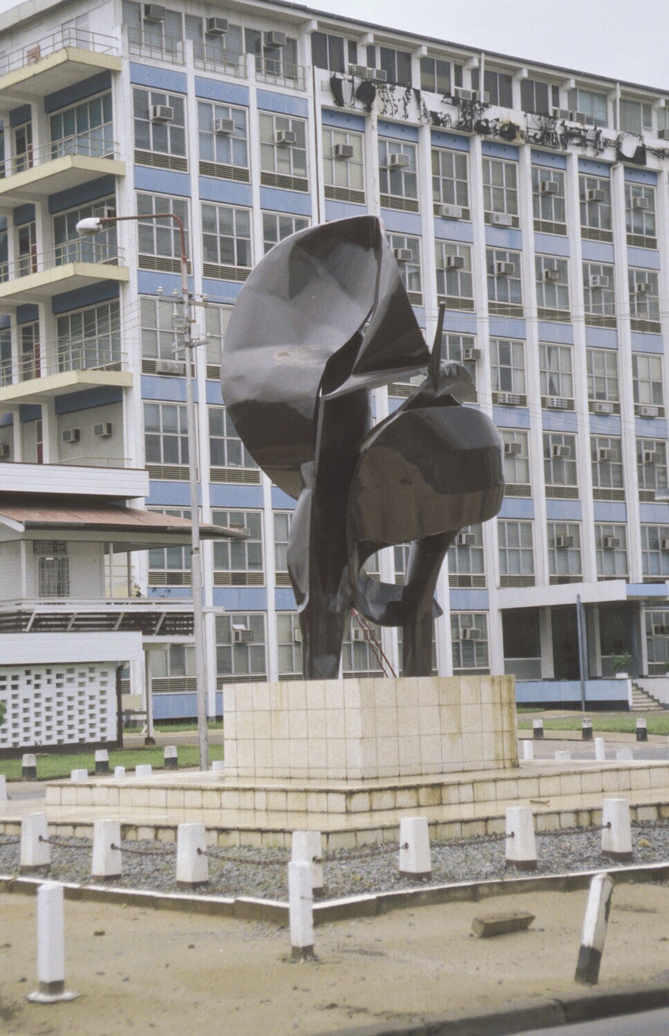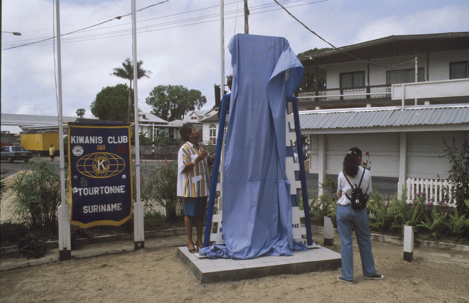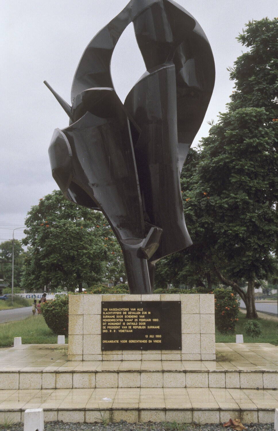 Paramaribo, straatbeeld, standbeeld, ter nagedachten...