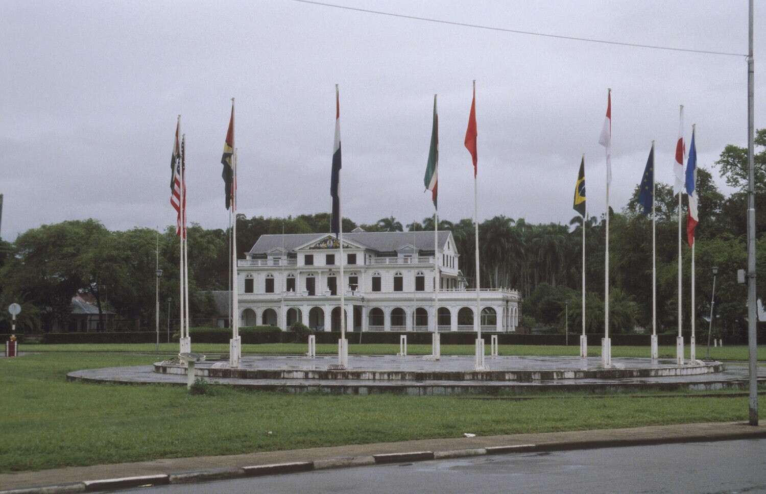 Paramaribo, straatbeeld, paleis met onafhankelijkhei...