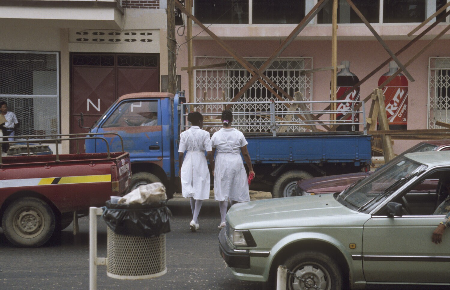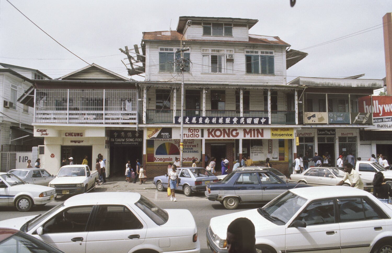 Paramaribo, straatbeeld, contrast tussen oud en nieu...
