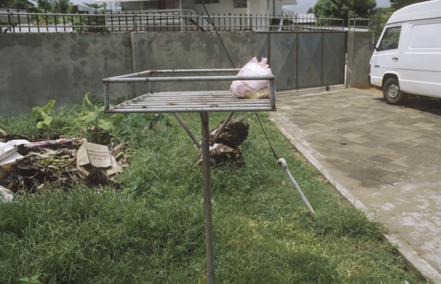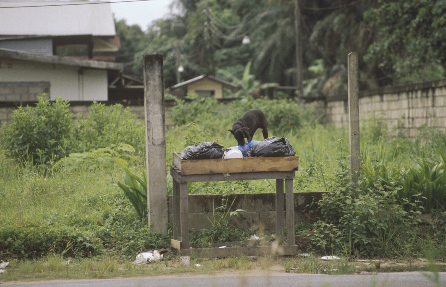 Paramaribo, straatbeeld, vuilnisverzamelplaats (verh...