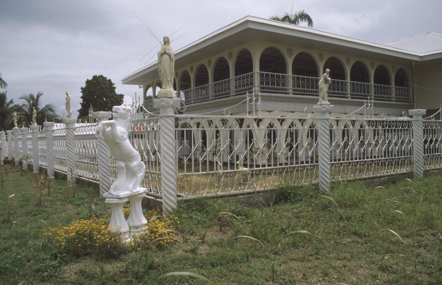 Paramaribo, straatbeeld, nieuwbouw villa met beelden