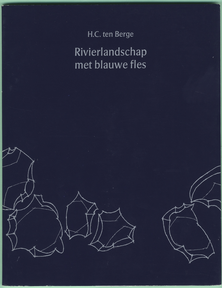Rivierlandschap met blauwe fles