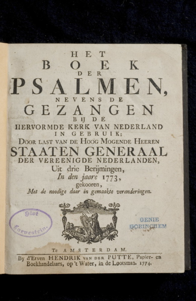 Het Boek Der Psalmen nevens de gezangen; berijmd 1773.