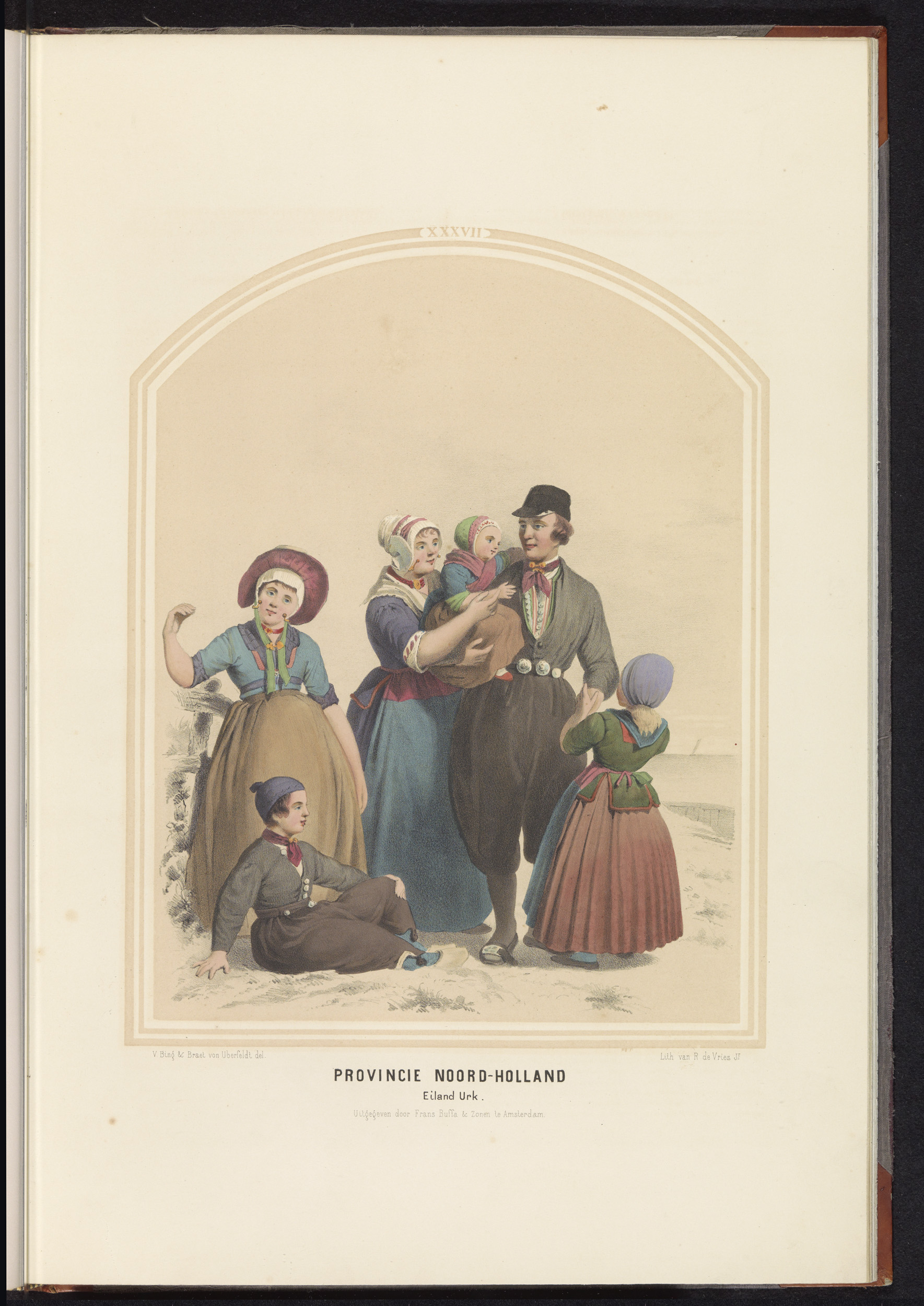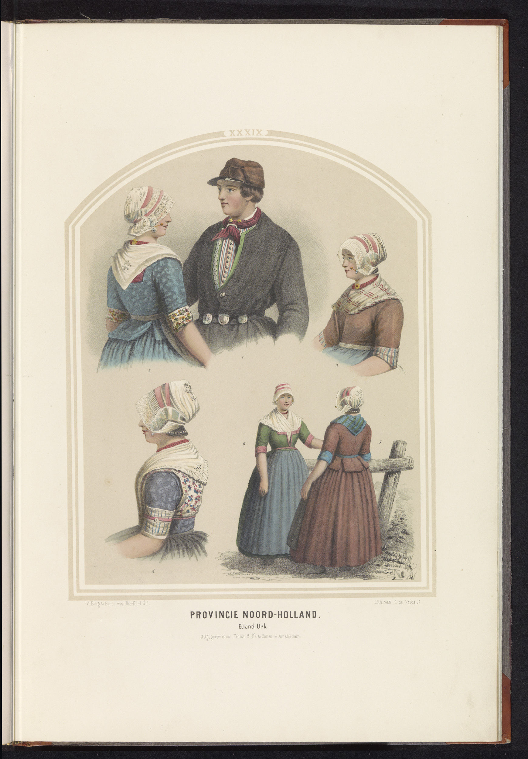 Klederdracht van het eiland Urk in Noord-Holland, 1857