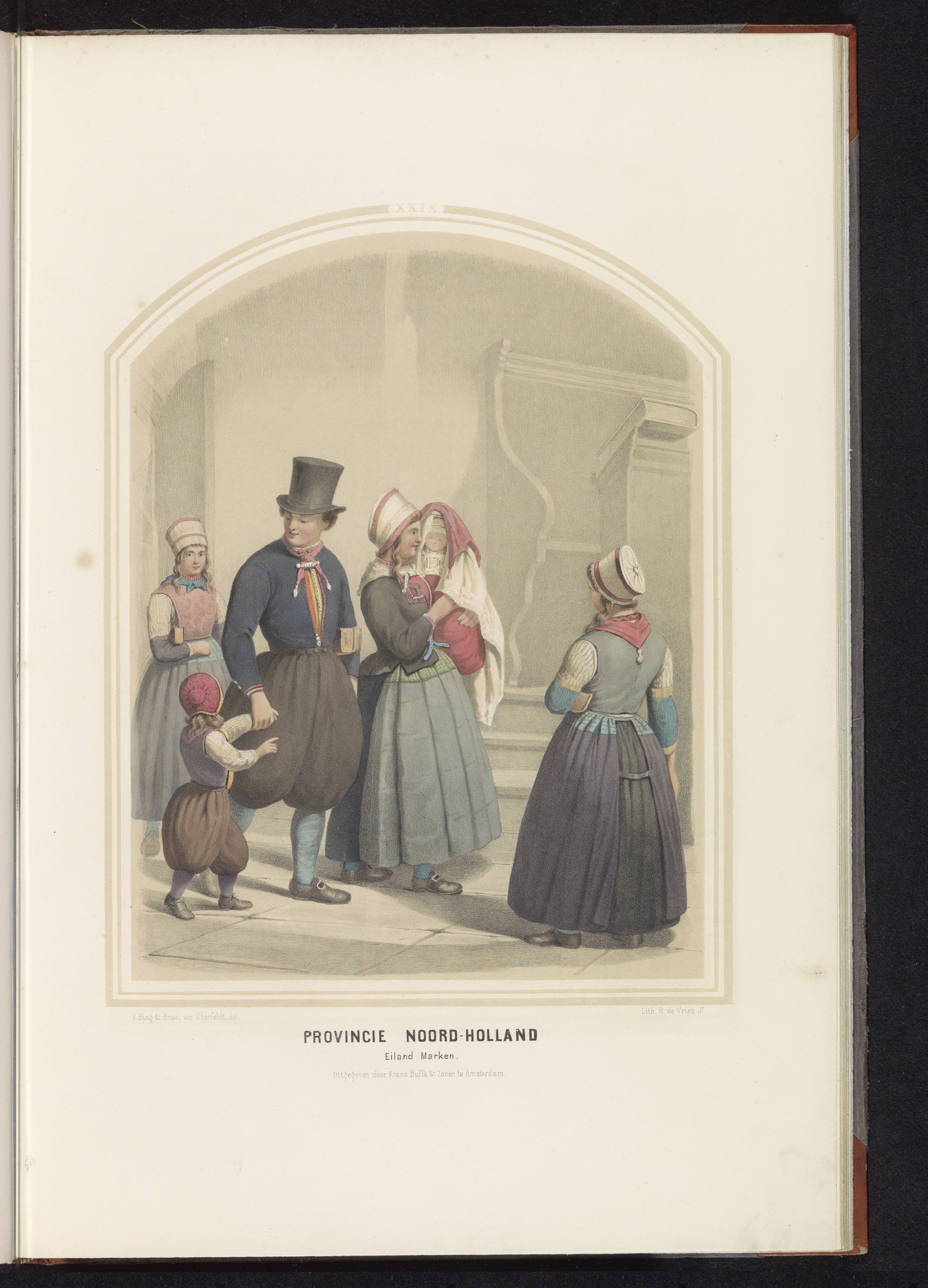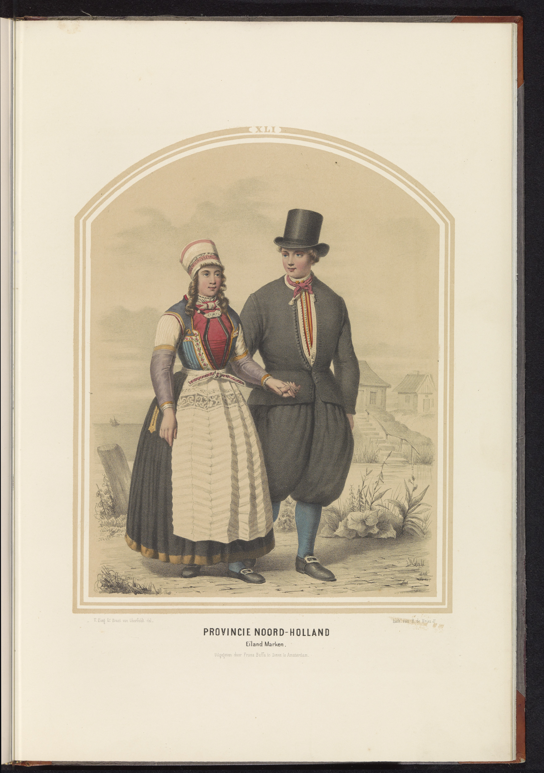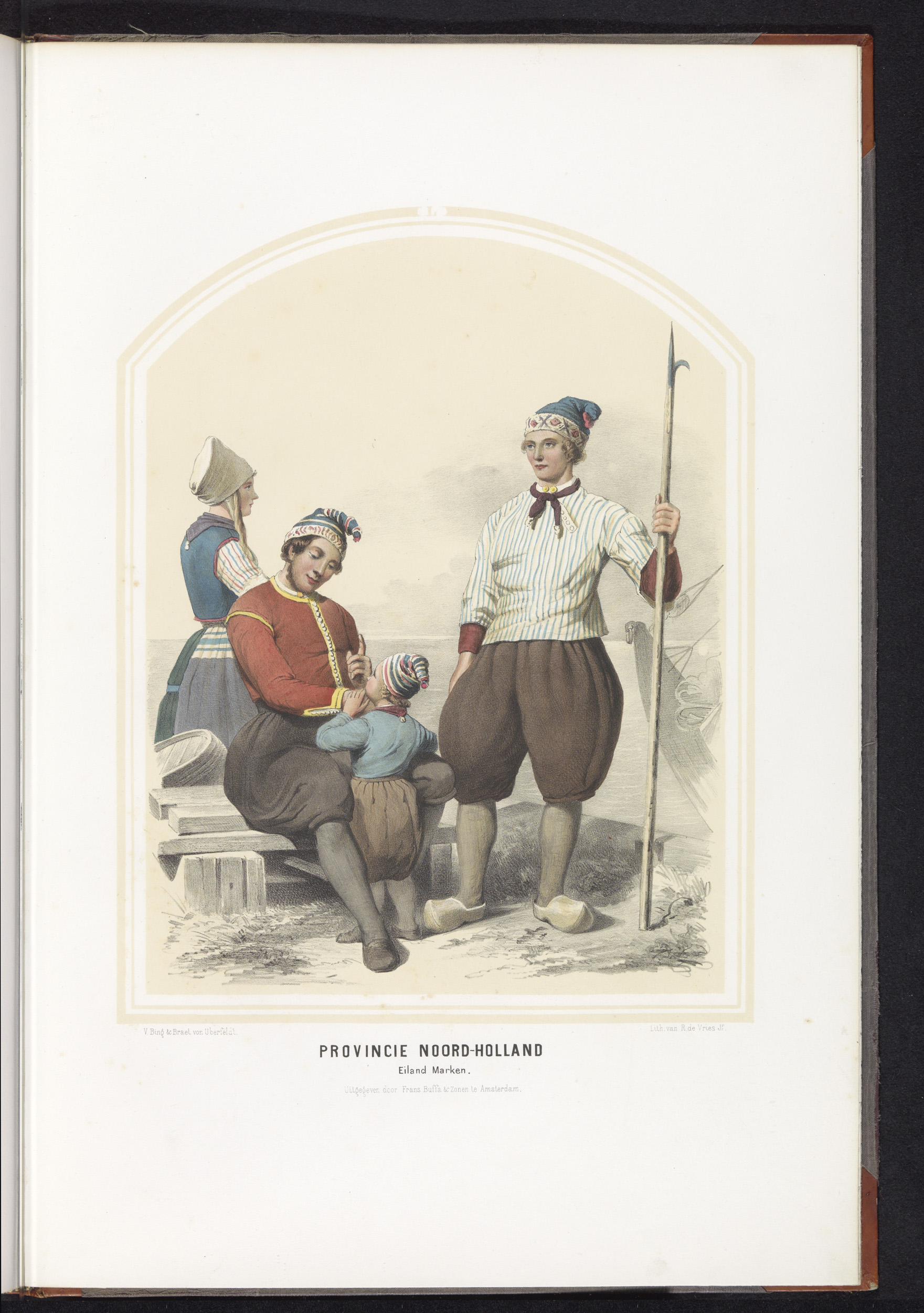 Klederdracht van eiland Marken in Noord-Holland, 1857