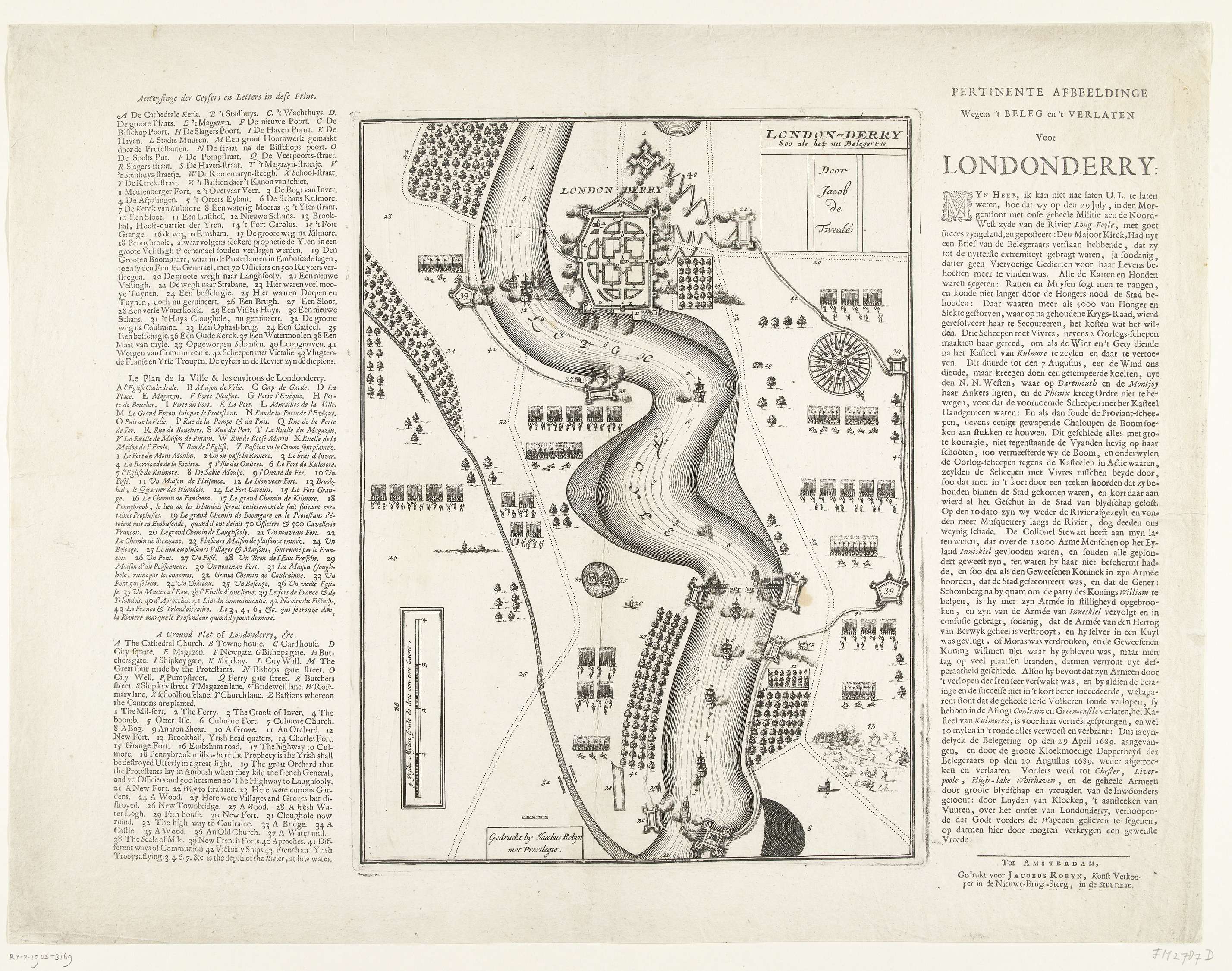 Kaart van het beleg van Londonderry, 1689