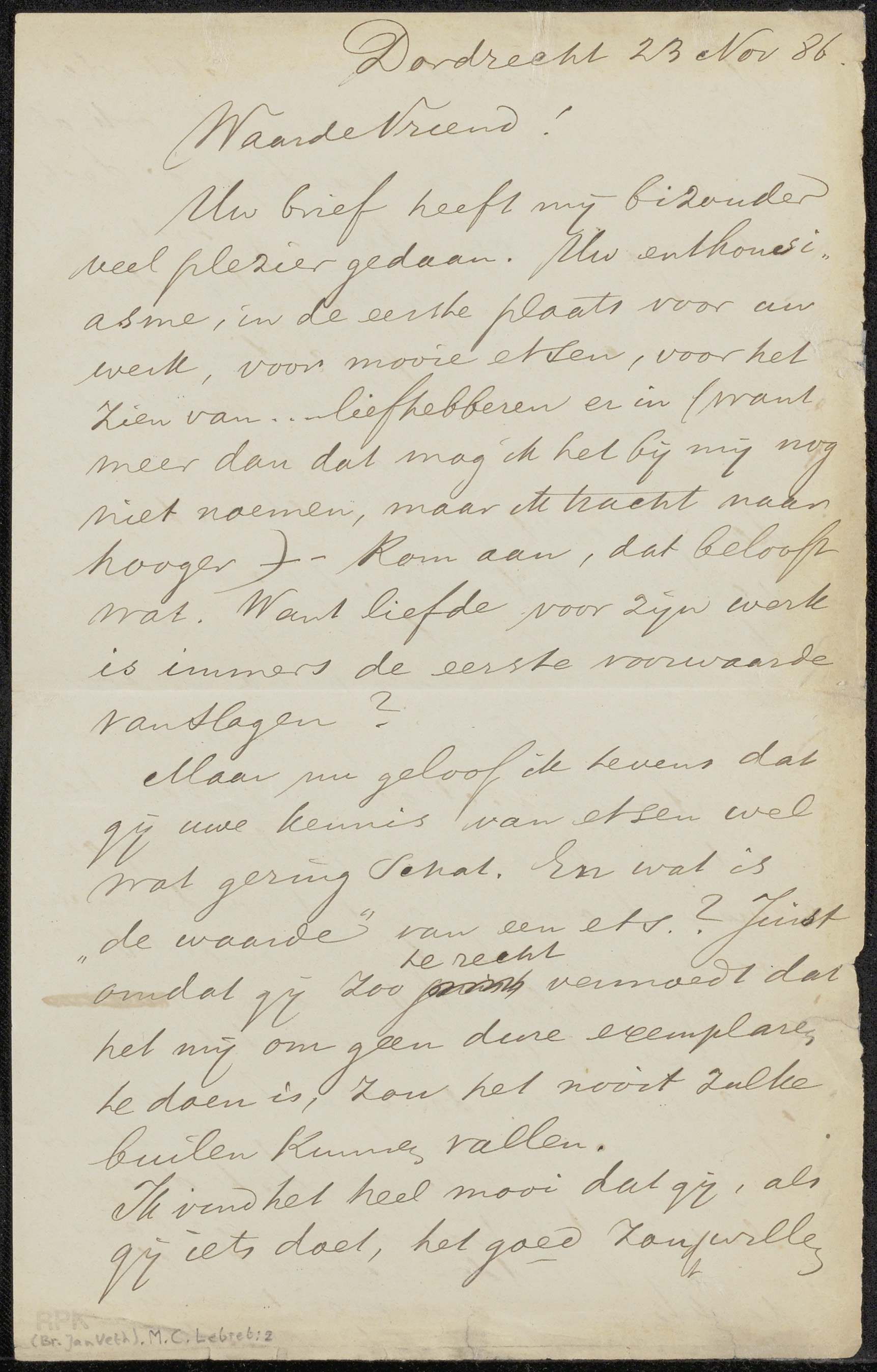 Brief aan Jan Veth