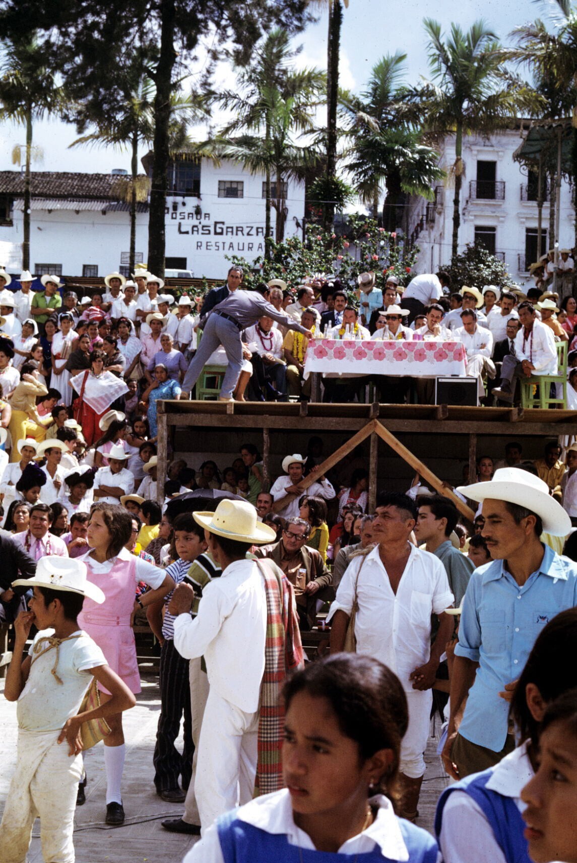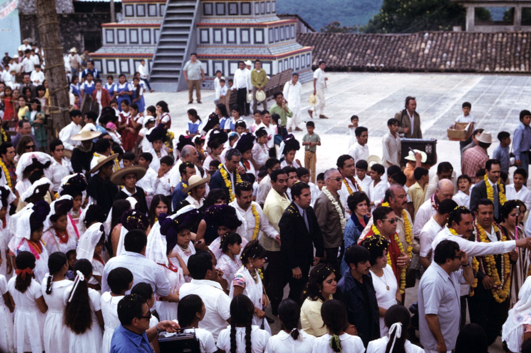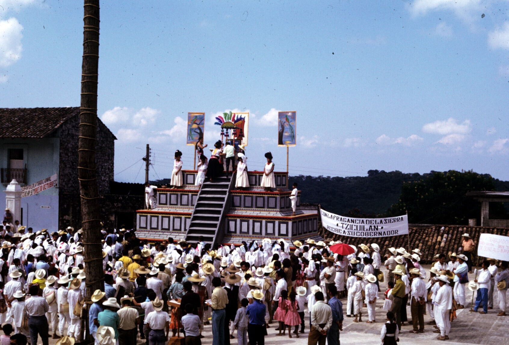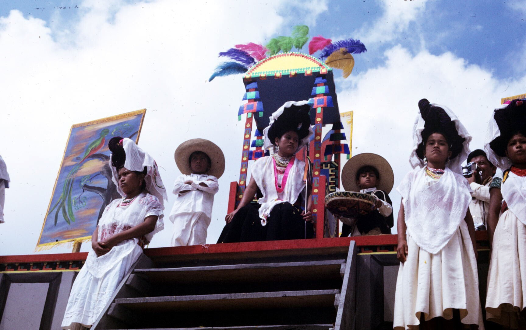 podium met de Koningin van de Huipil op haar troon