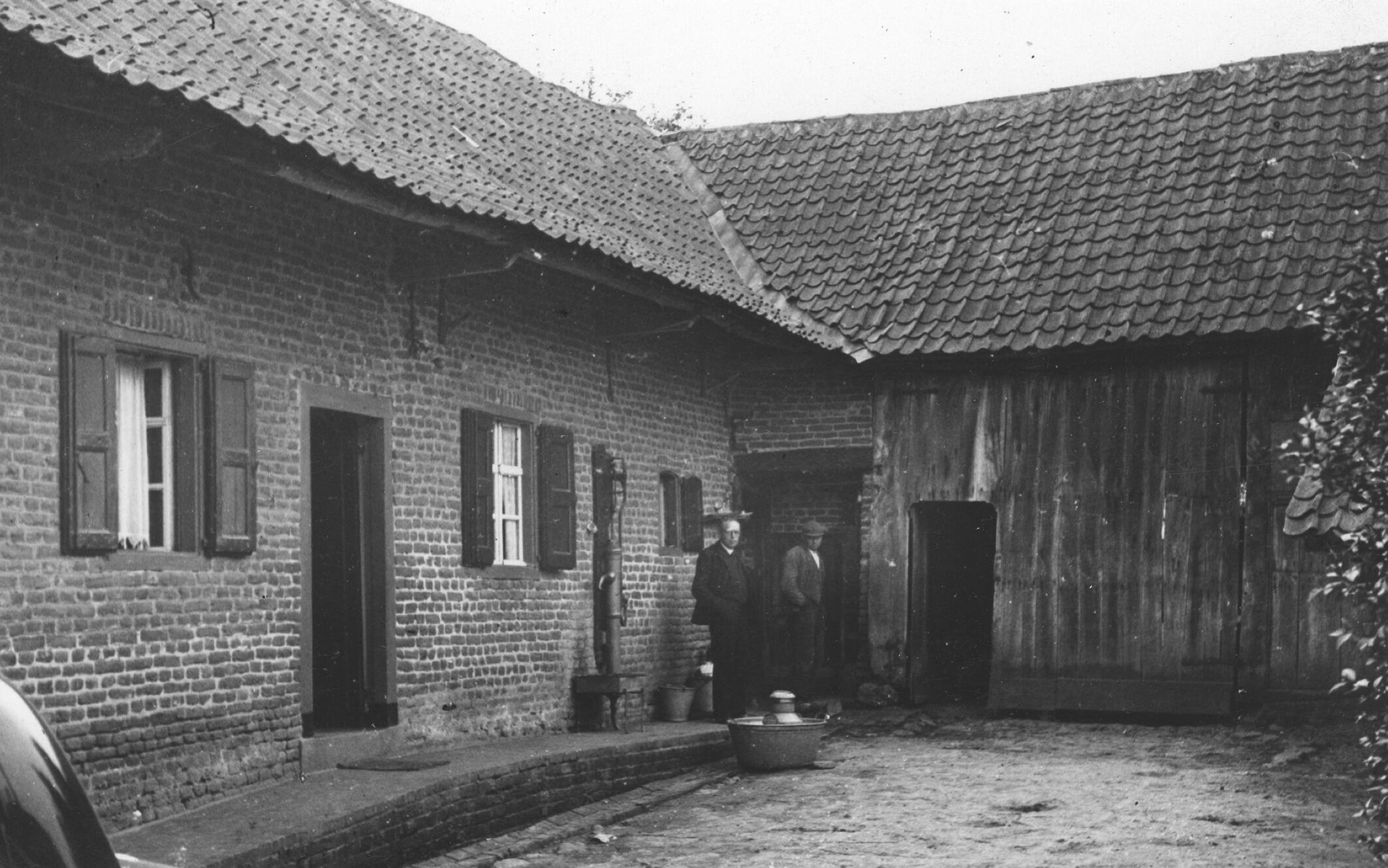 Binnenplaats met inrijdeur, Limbricht, 1937 (zwart-w...