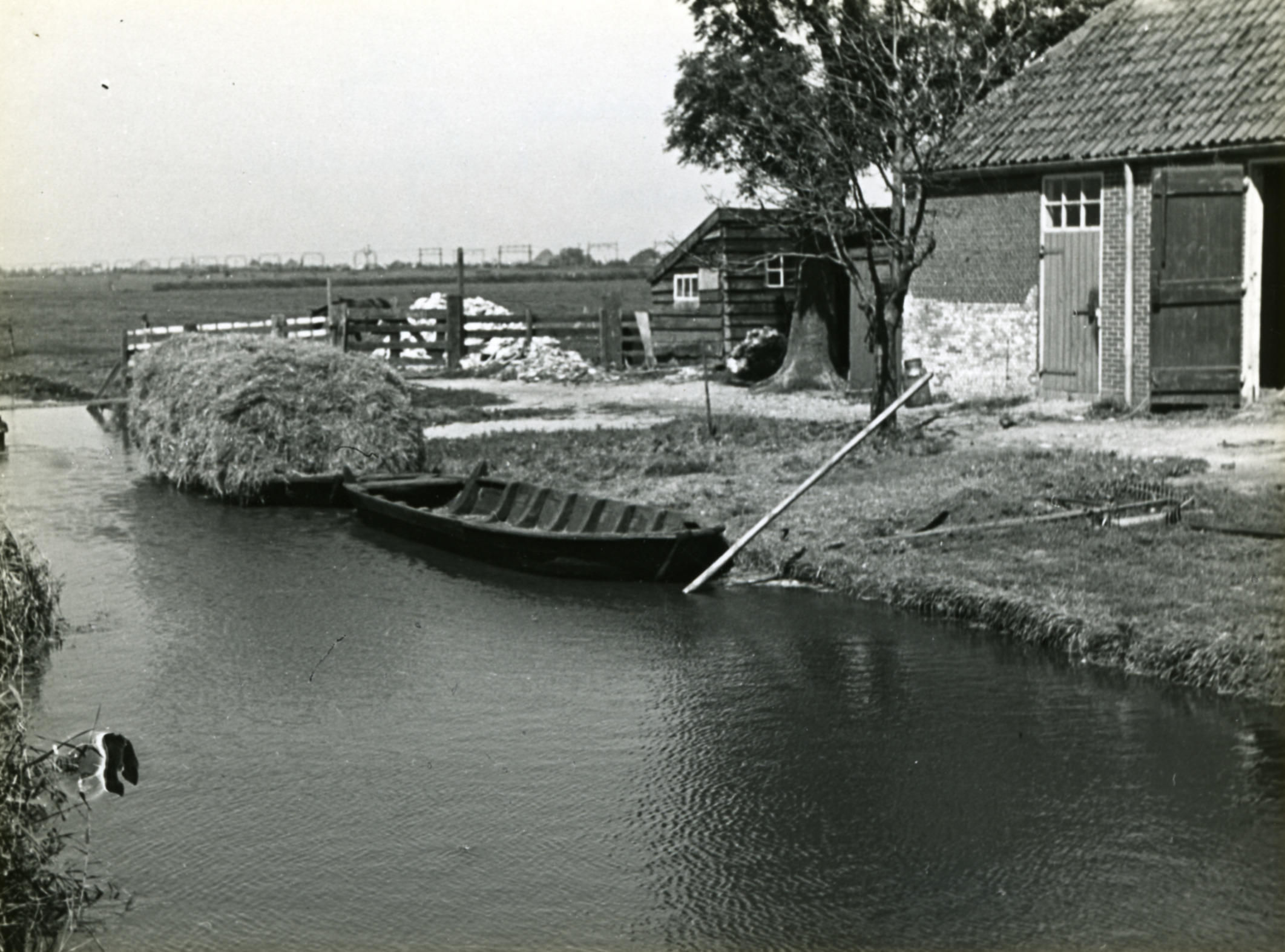 Hooivervoer per praam, Assendelft, 1947 (zwart-wit f...