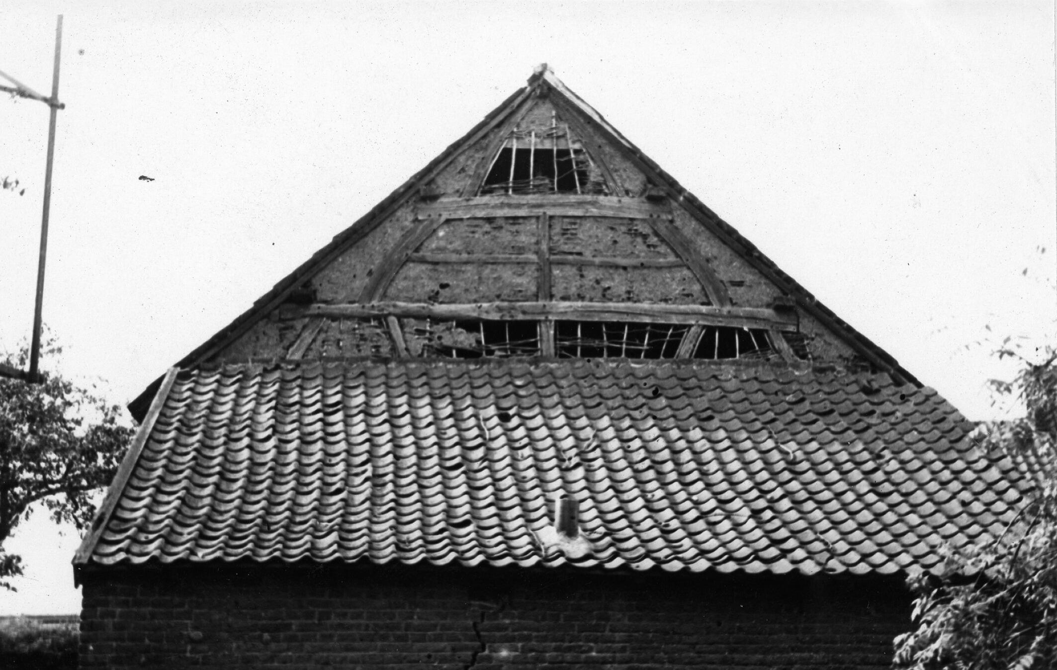 Afbraak van een schuur, Guttecoven, 1937 (zwart-wit ...