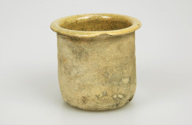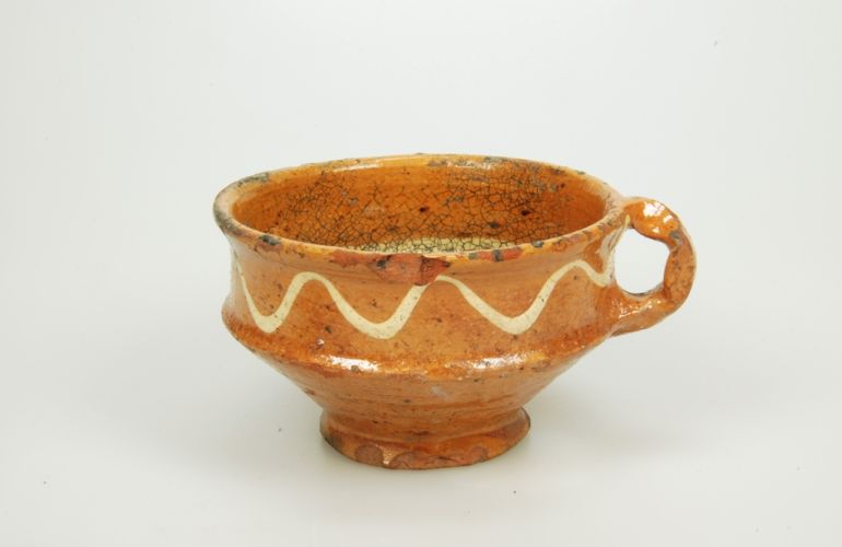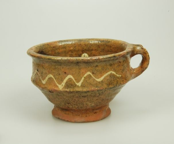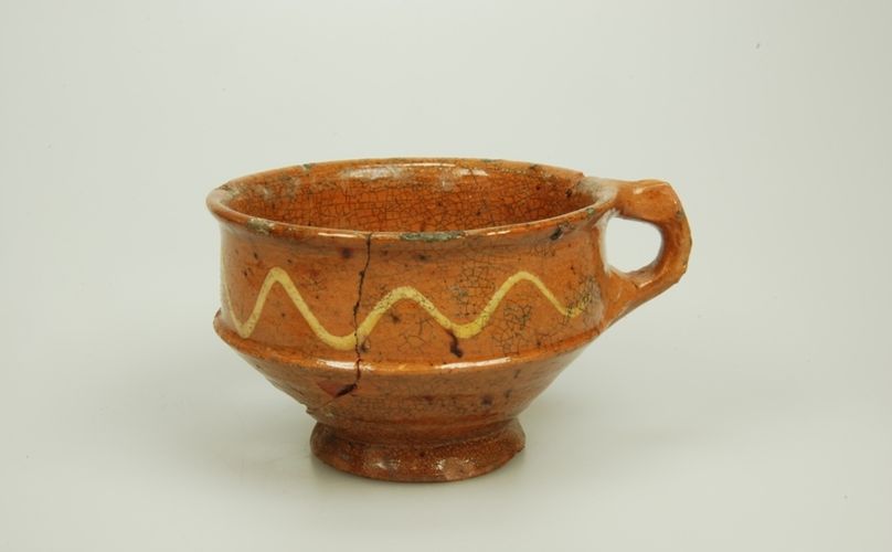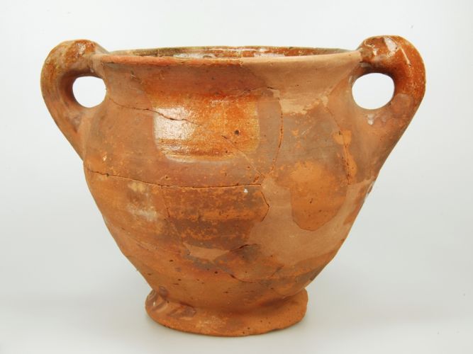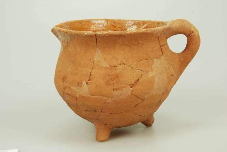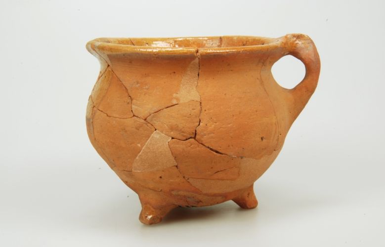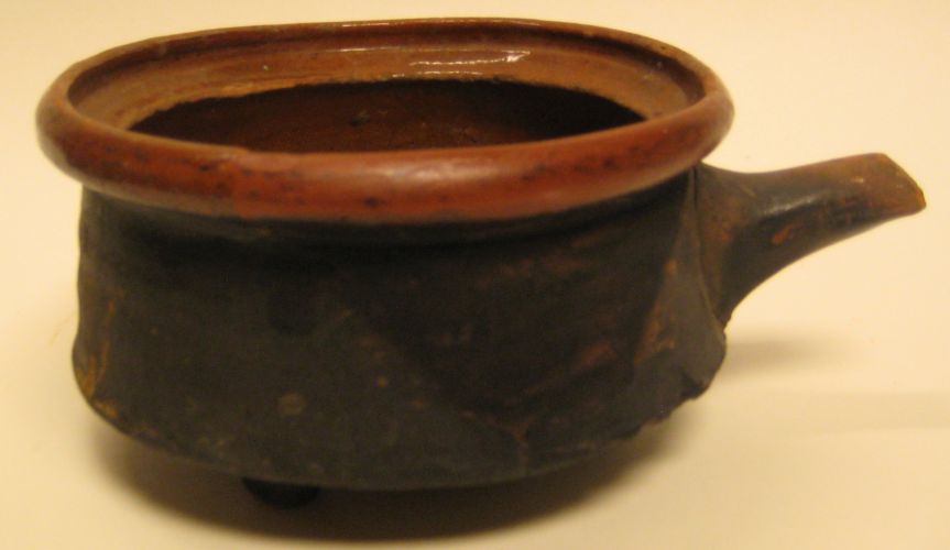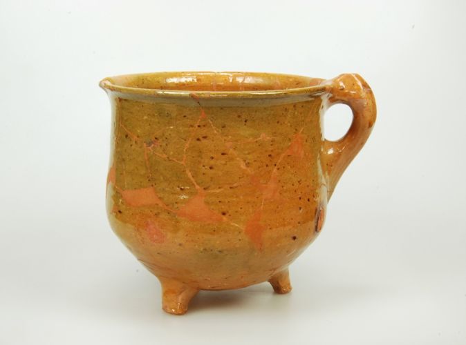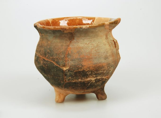 Steelpan op drie poten van roodbakkend aardewerk, 17...