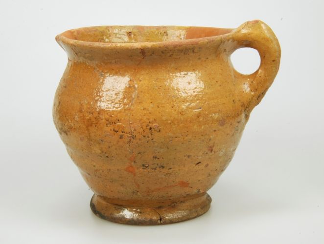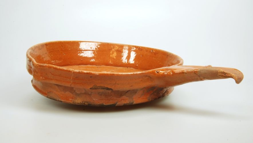 Steelpan met schenktuit van roodbakkend aardewerk, 1...