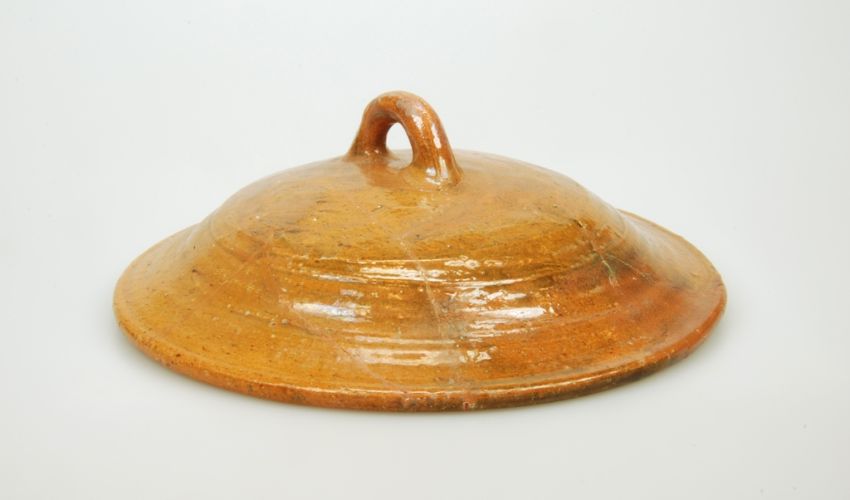 Deksel met rond oor van roodbakkend aardewerk, 18de ...