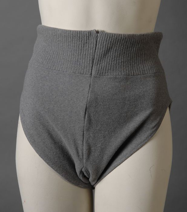 Onderbroek, gebreid, genaaid, grijs, wol, gemaakt ui...