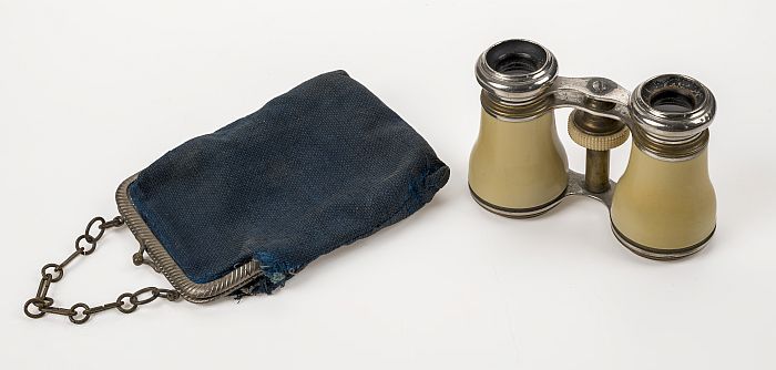 Opvouwbaar vergrootglas gevat in parelmoer ovaal cac...