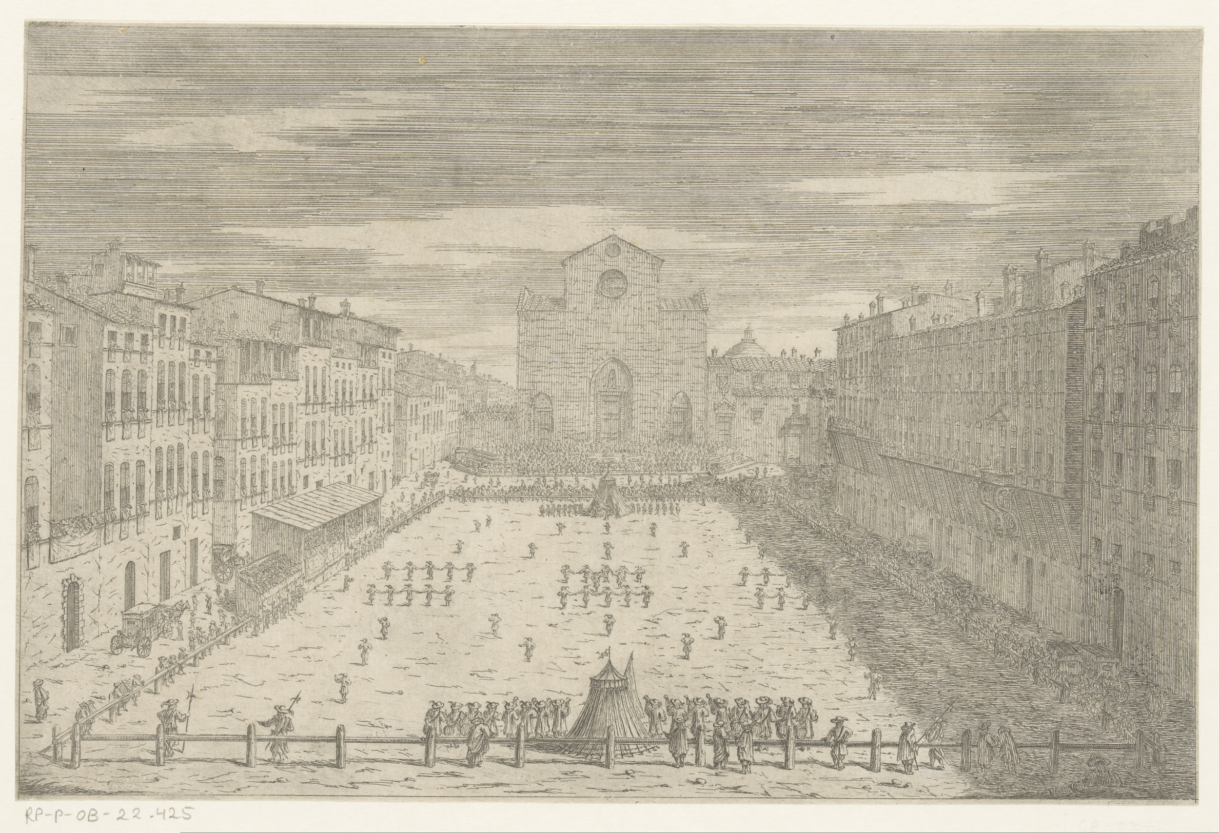 Festiviteiten op Piazza Santa Croce voor de kerk de ...