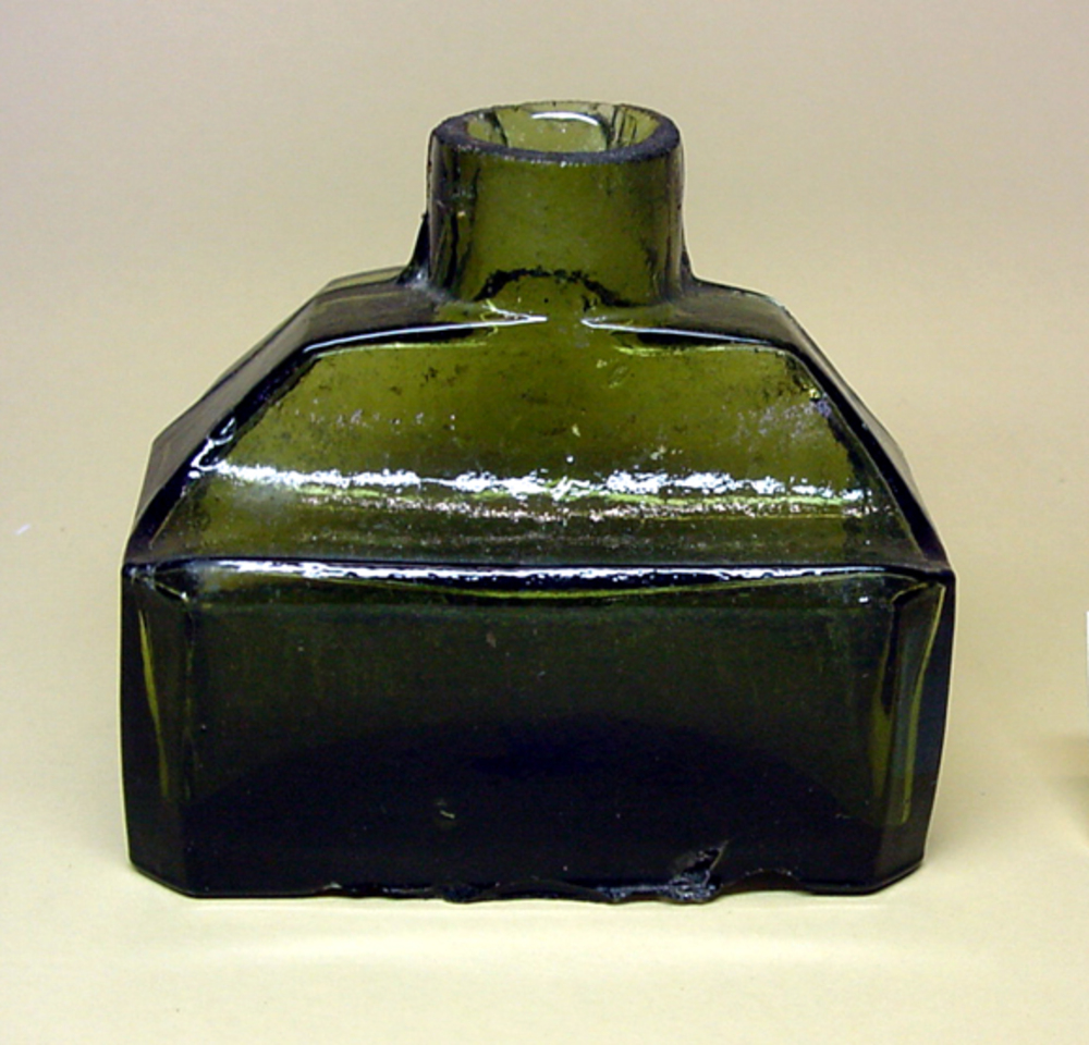 Inktflesje met pennenhouder van glas van H. van Gimb...