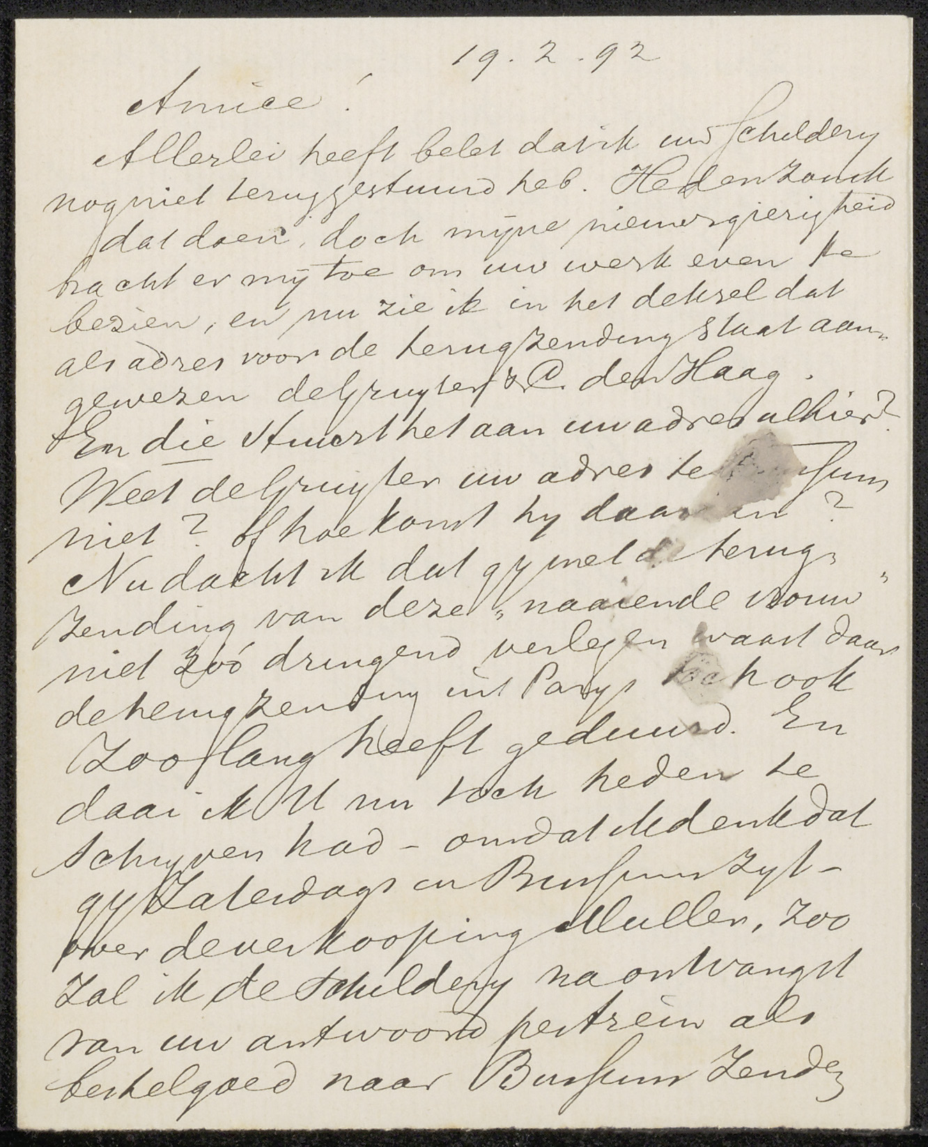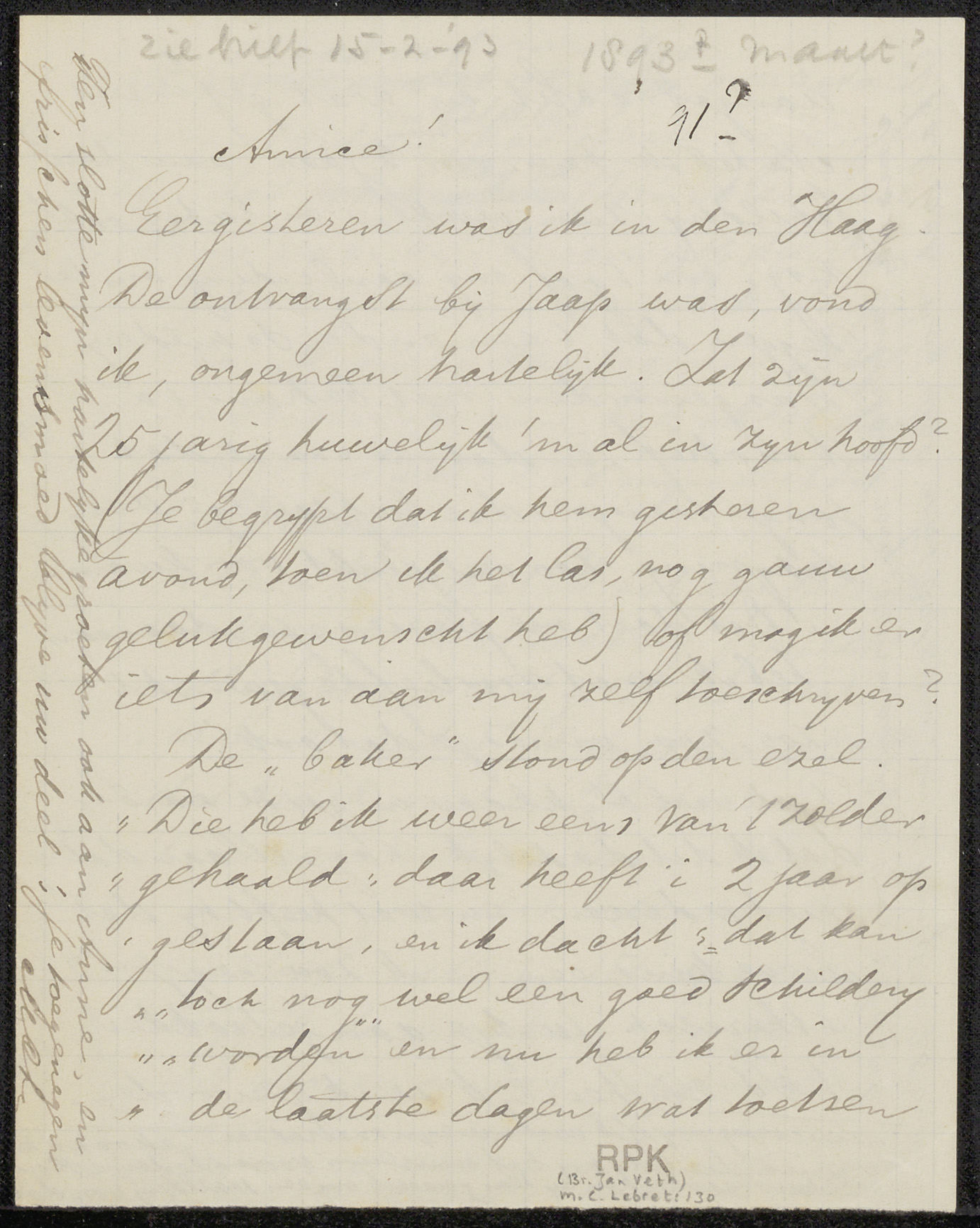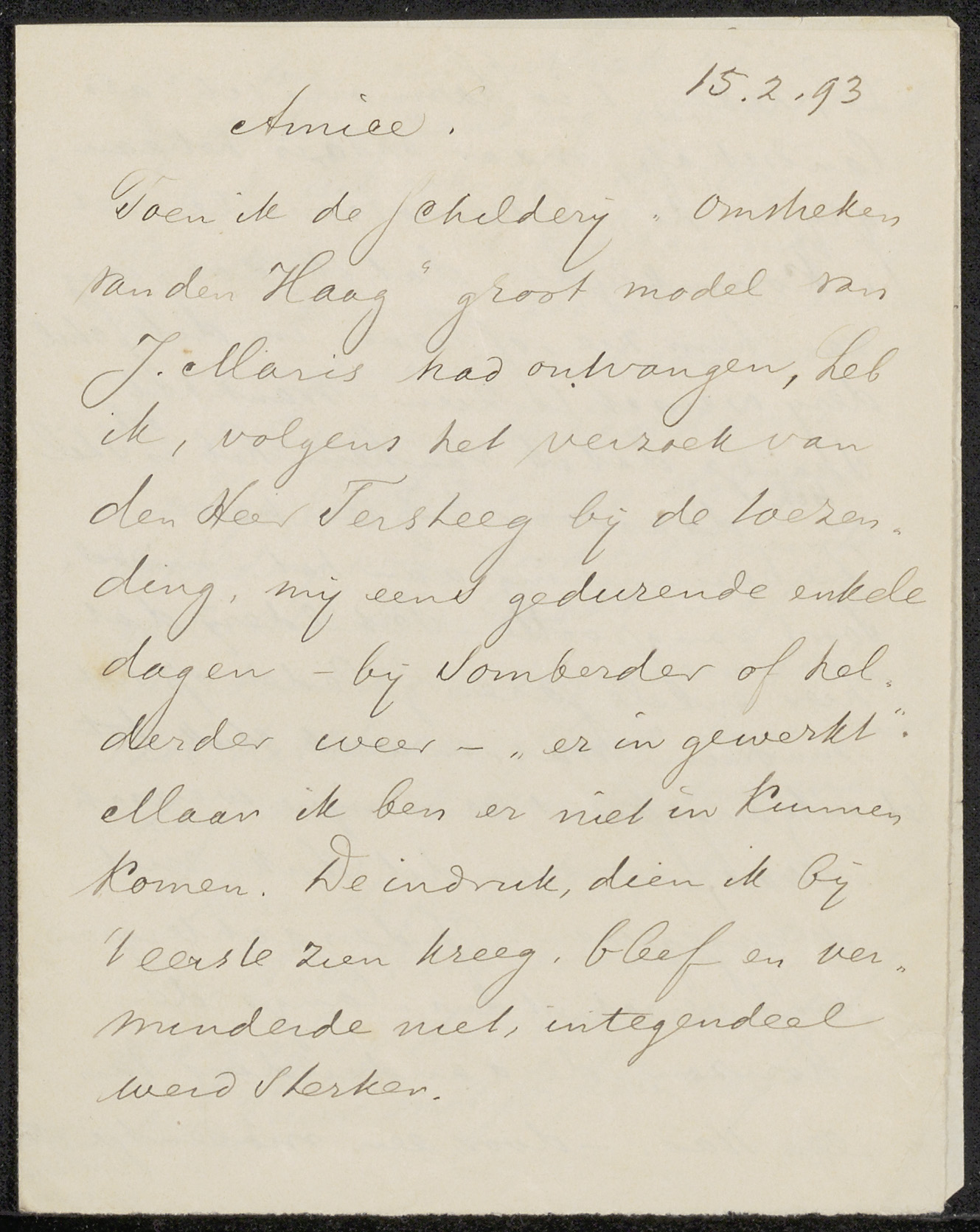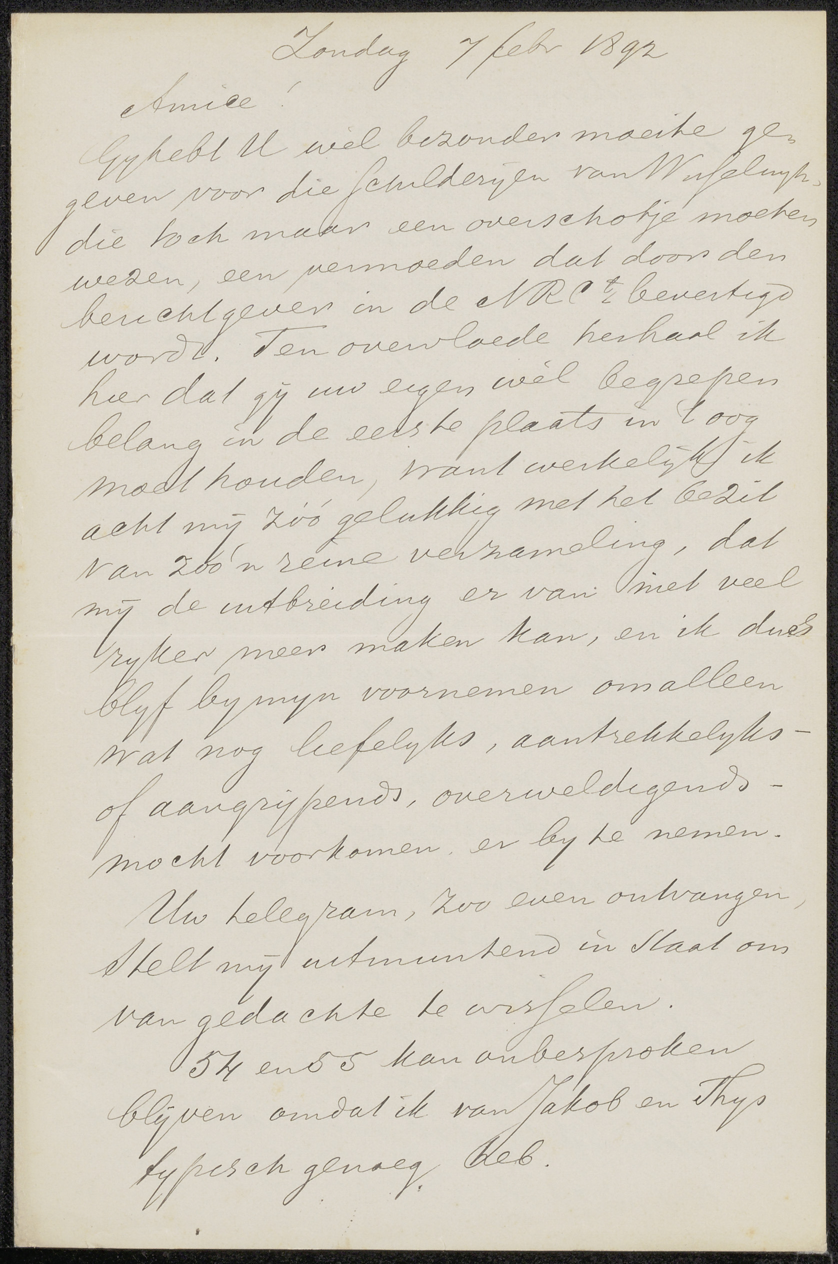 Brief aan Jan Veth