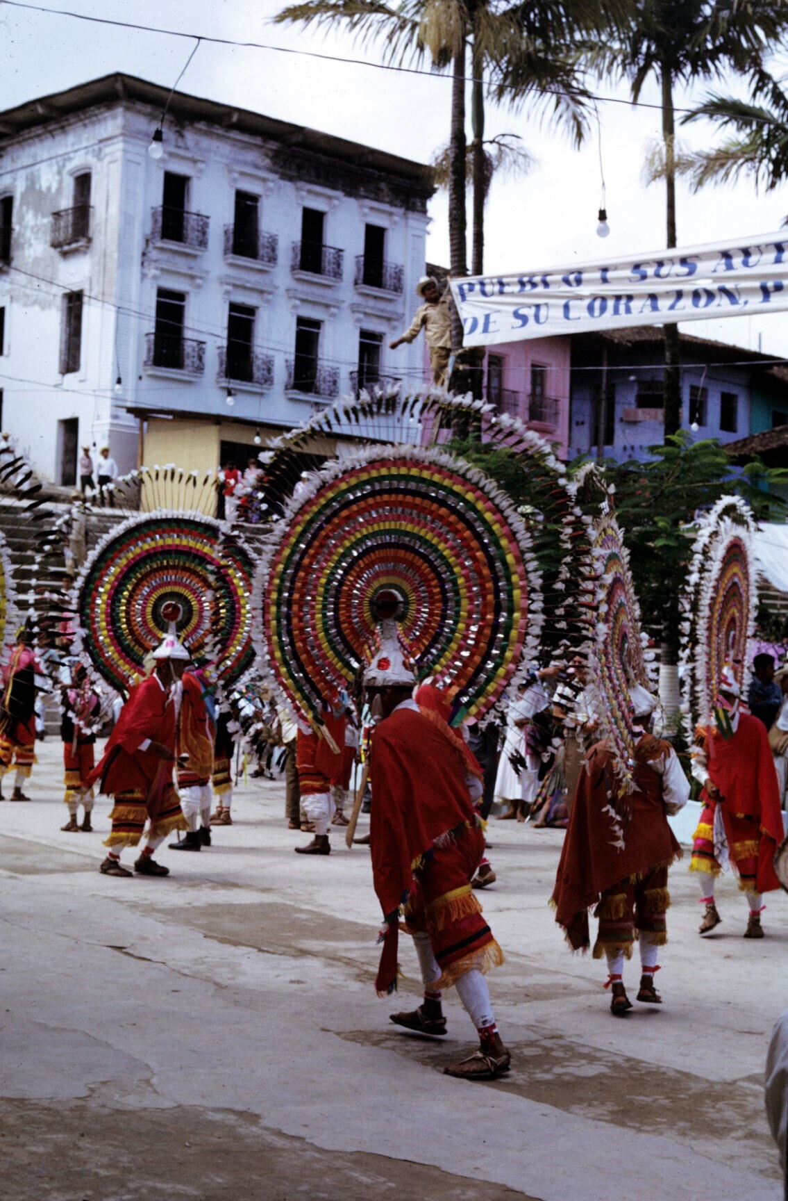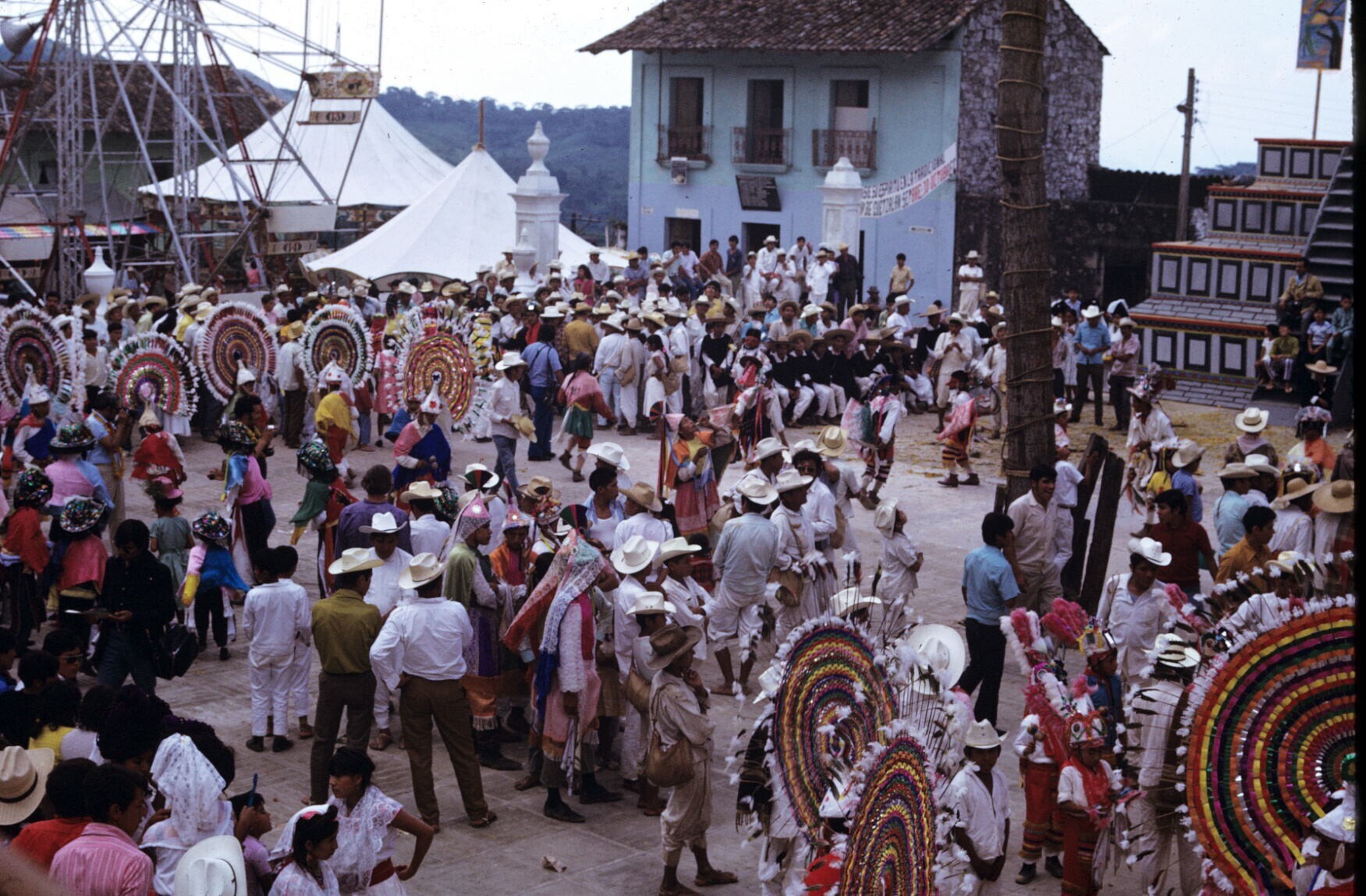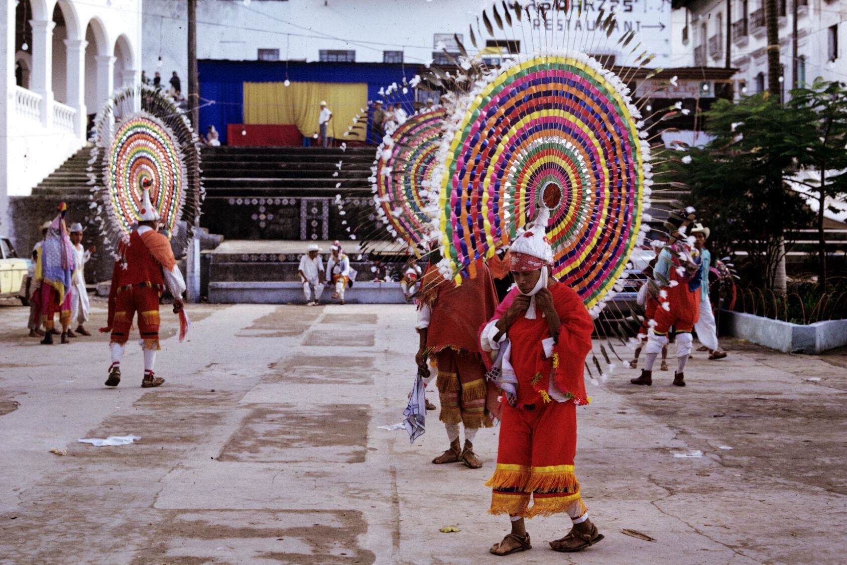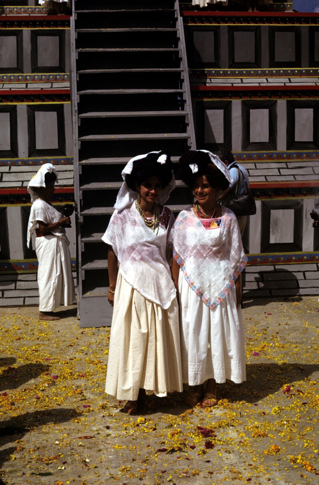 optreden Quetzaldansers; ernaast: "Negrito" dansers