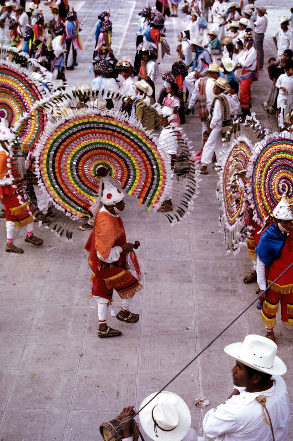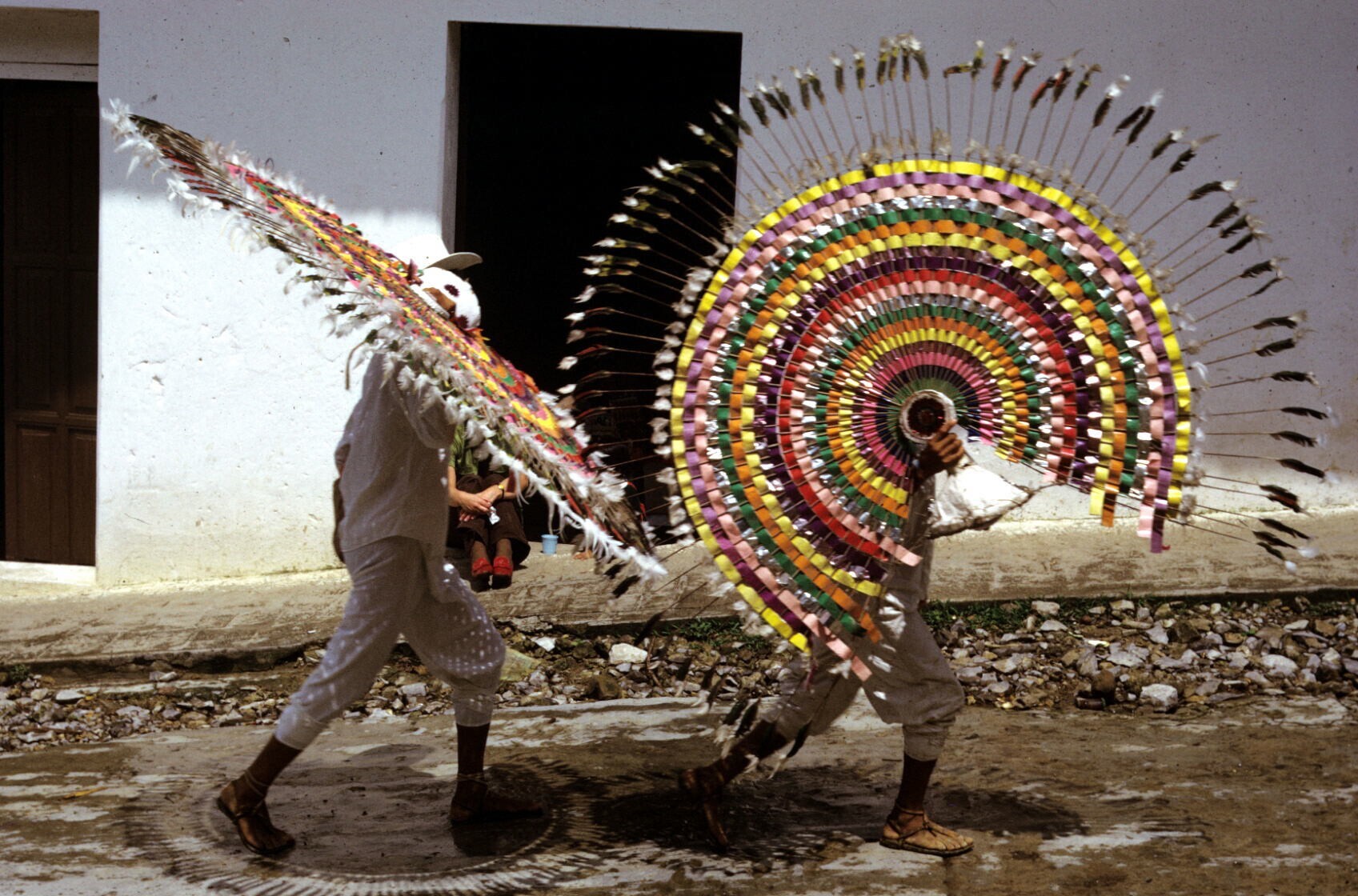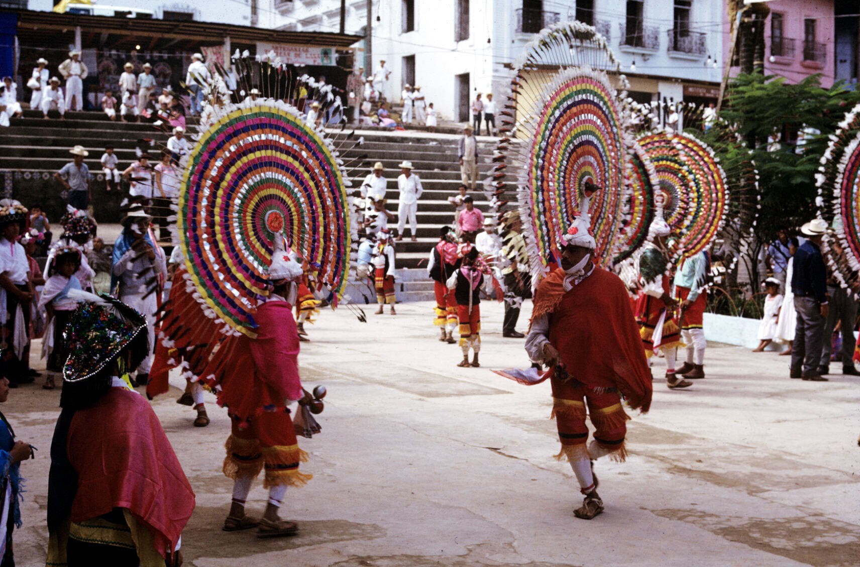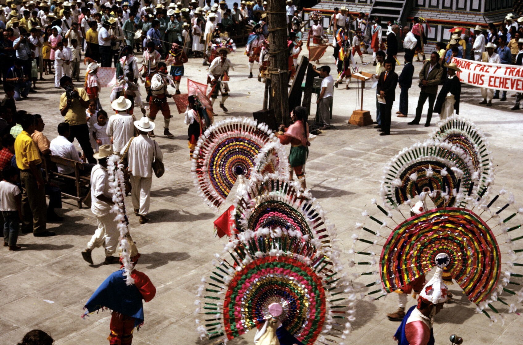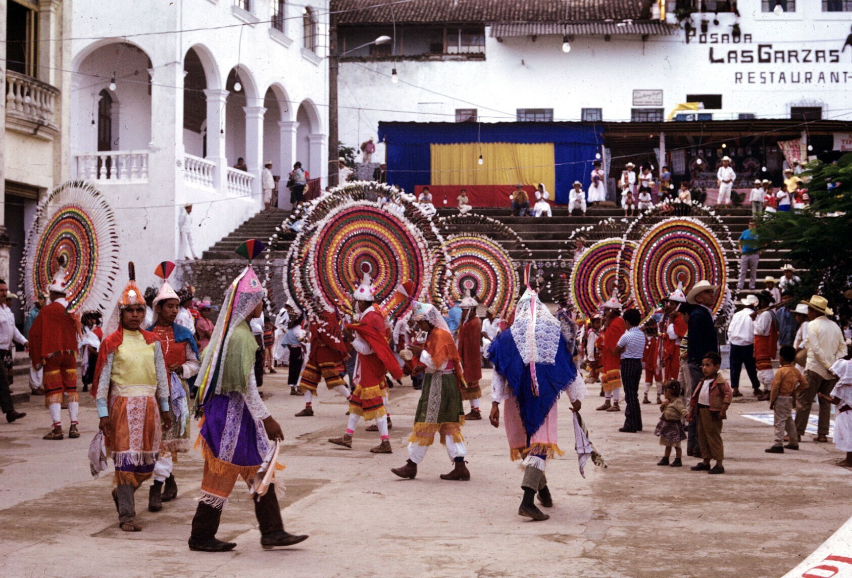 optreden Quetzaldansers; ernaast: "Negrito" dansers