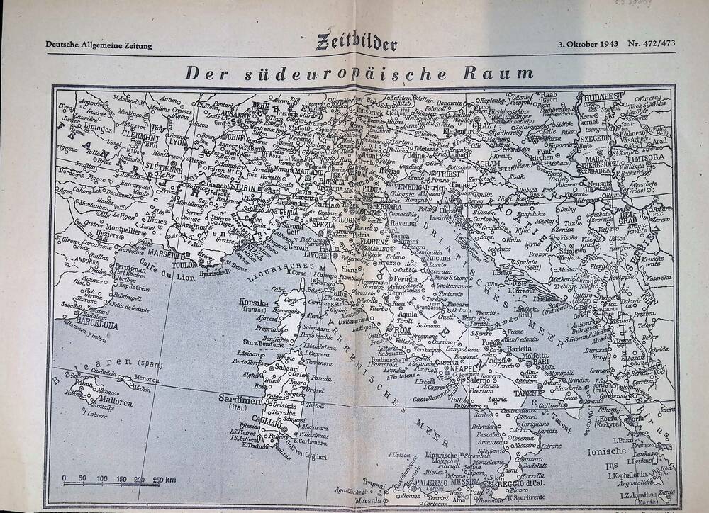 Deutsche Allgemeine Zeitung, 3 oktober 1943, landkaart