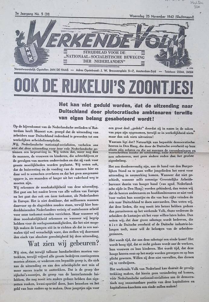 Werkend Volk, 9 april 1943.