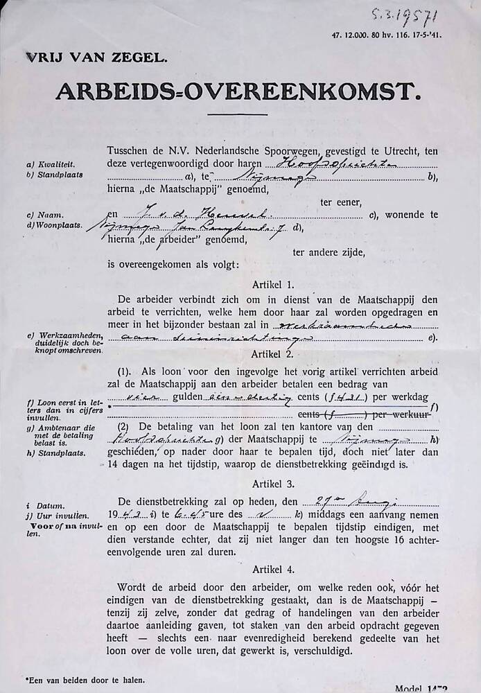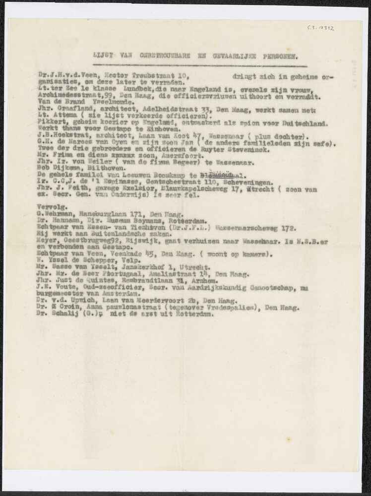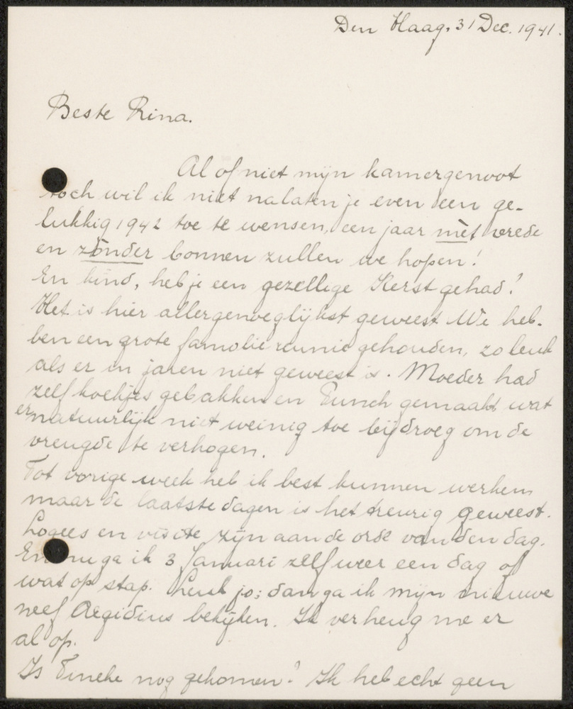Briefje, Den Haag 31 Dec. 1941