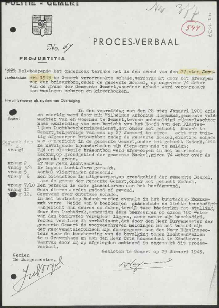 Proces-verbaal No. 67 Politie Gemert 27 januari 1943.