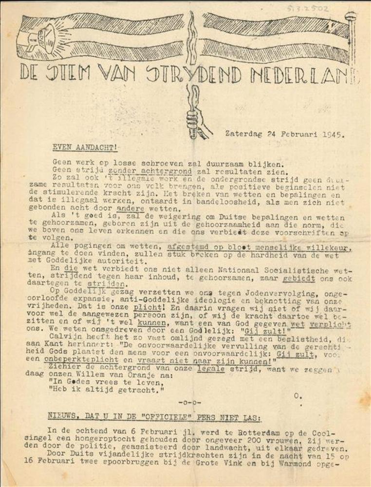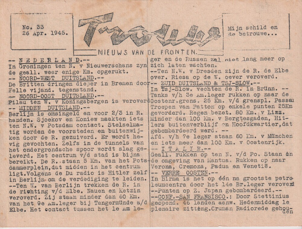Dagelijksche nieuwsuitgave "Trouw" 26 april 1945