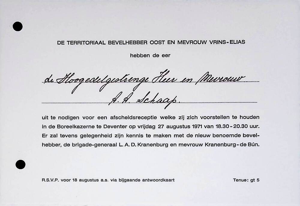 De Territoriaal Bevelhebber Oost en mevrouw Vrins-Elias